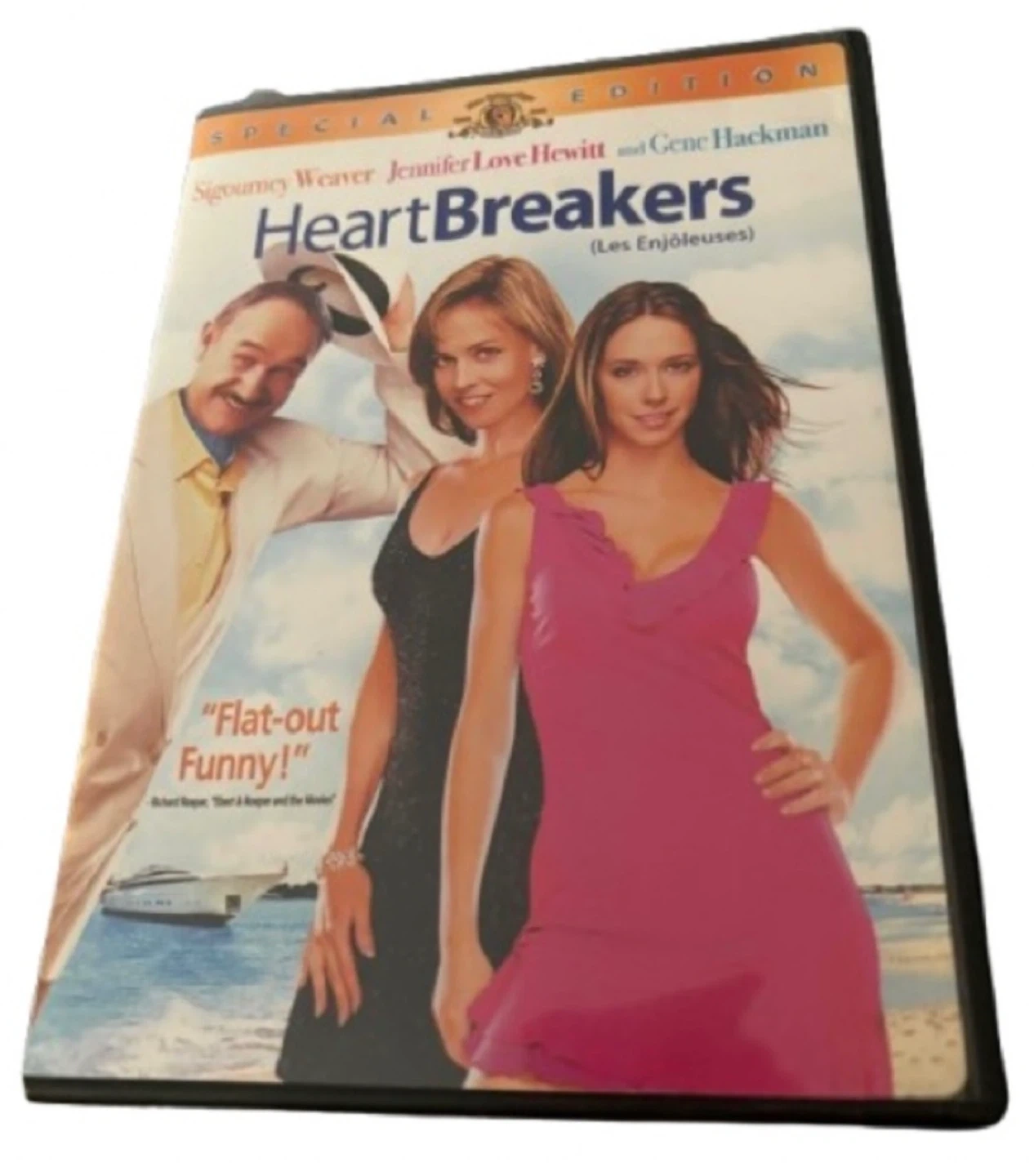 Special Edition DVD of Heartbreakers, the stylish con‑artist romantic comedy starring Sigourney Weaver, Jennifer Love Hewitt, and Gene Hackman. Case and disc in good condition. Includes bonus features and original artwork. Perfect for collectors of early‑2000s comedies or anyone building out a classic DVD shelf.