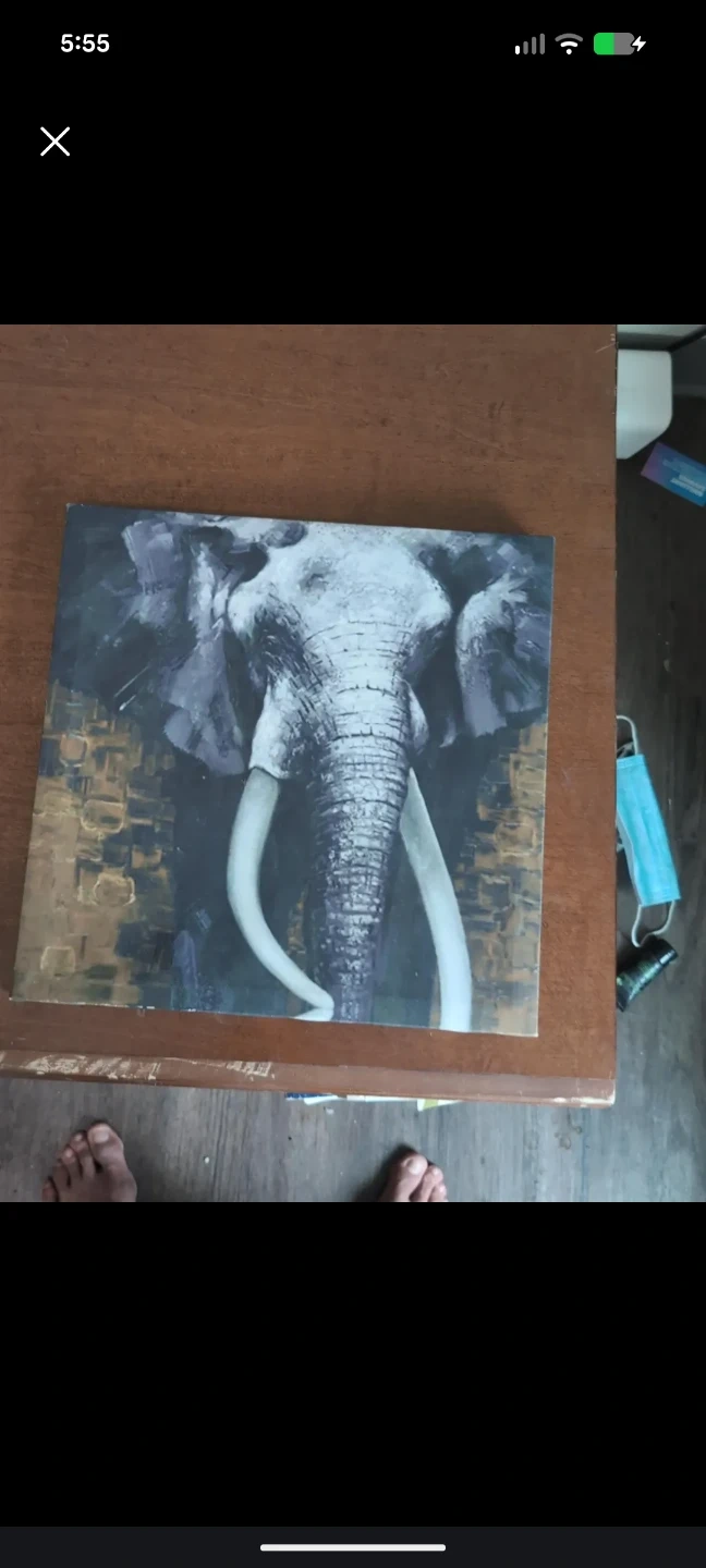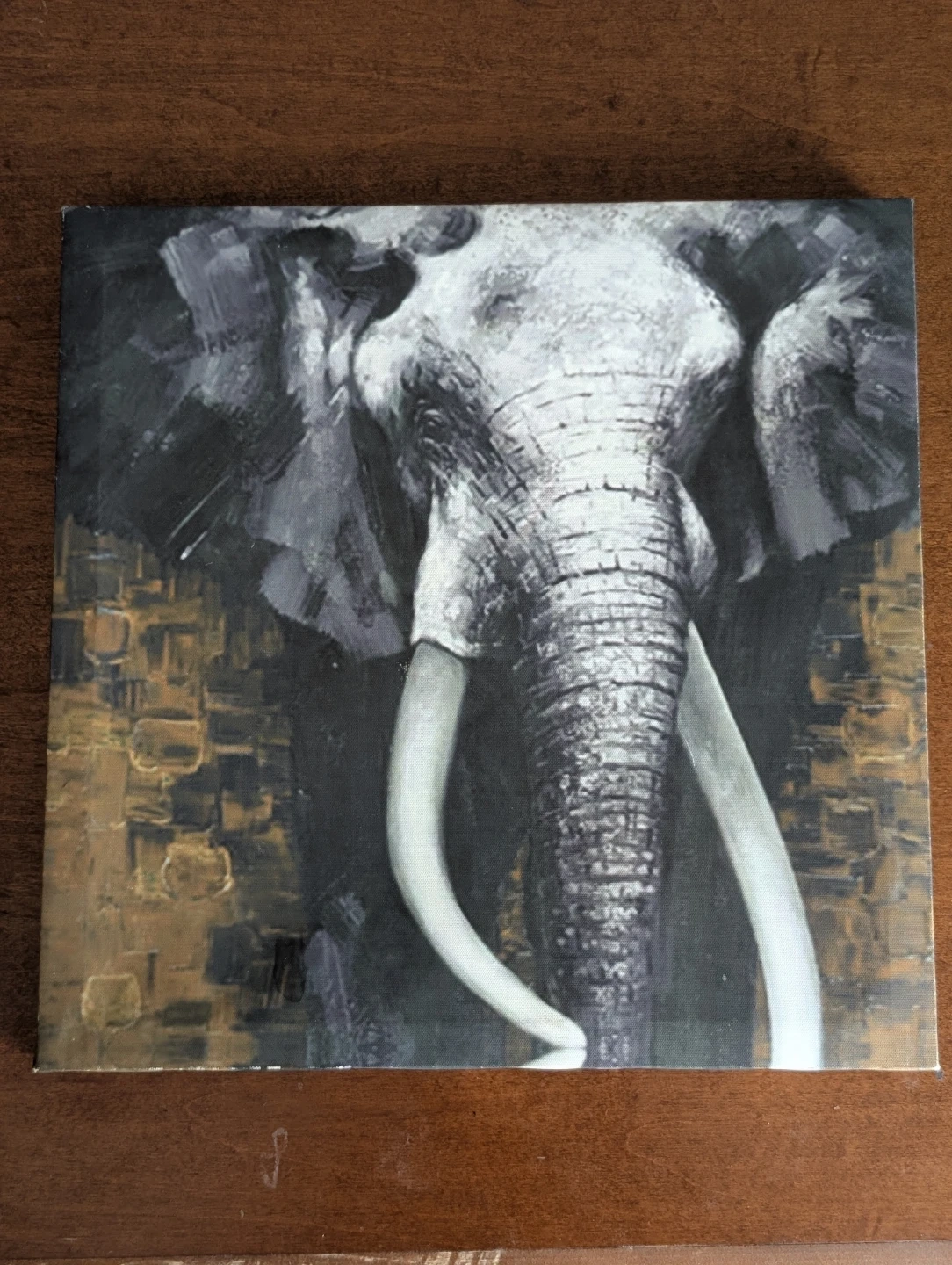 This canvas wall art features a striking portrait of an elephant. Its neutral tones and textured background make it a versatile piece for any room. It's ready to hang and adds a touch of the wild to your decor.