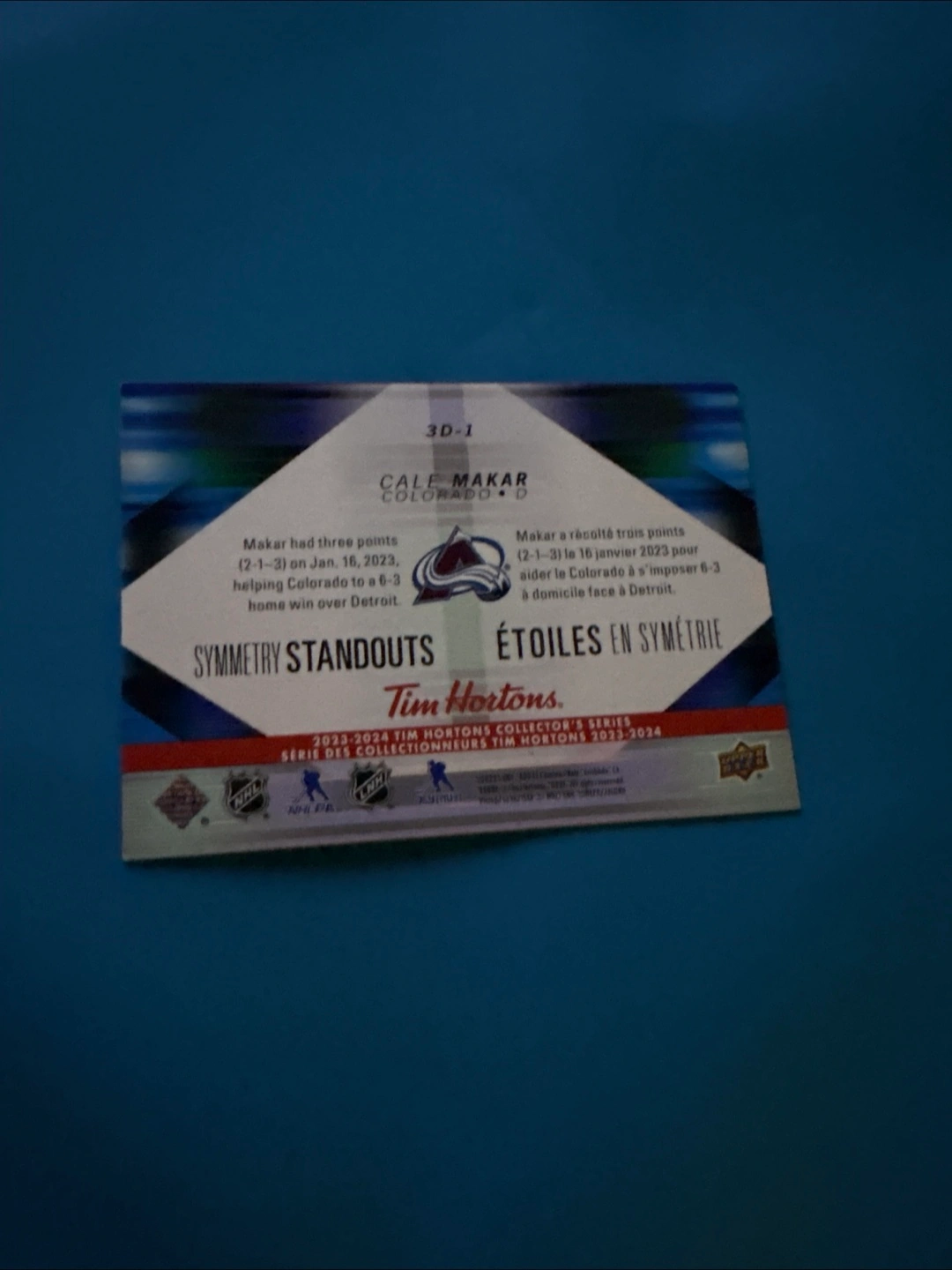Hockey card featuring an image of Cale Makar. A great addition to any hockey fan's collection, or just to have for yourself.