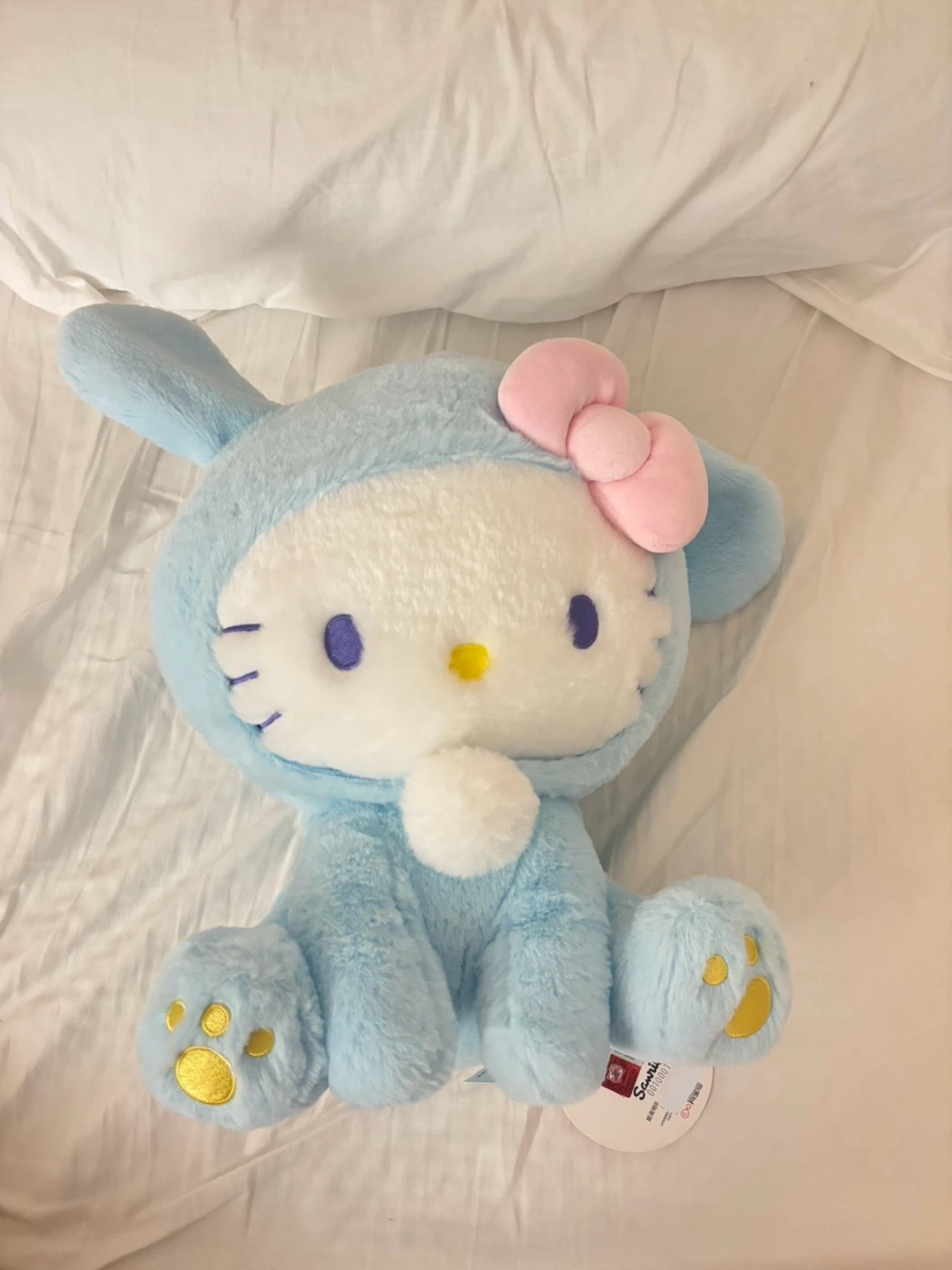 Selling this cute Hello Kitty plushie dressed as a blue bunny! It's in great condition and ready for a new home. The plush is soft and has a sweet pink bow. Perfect for any Hello Kitty fan! ππ