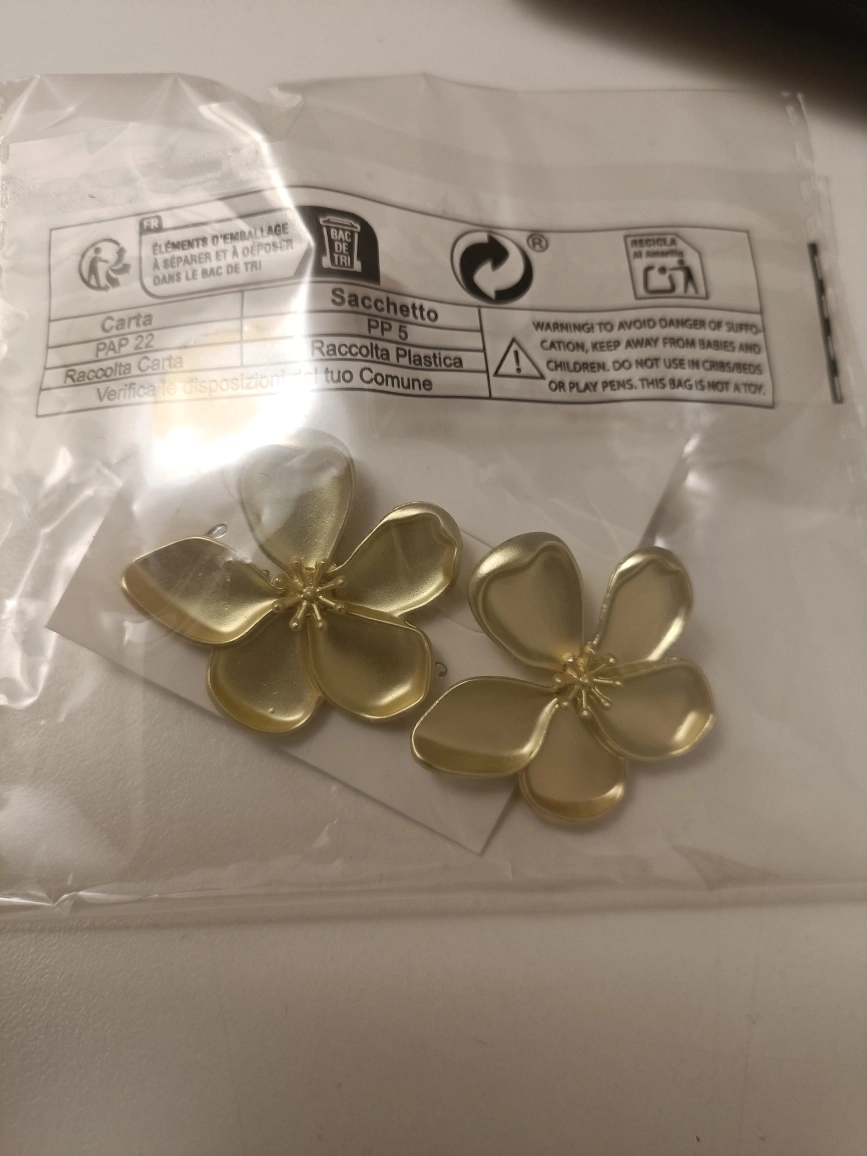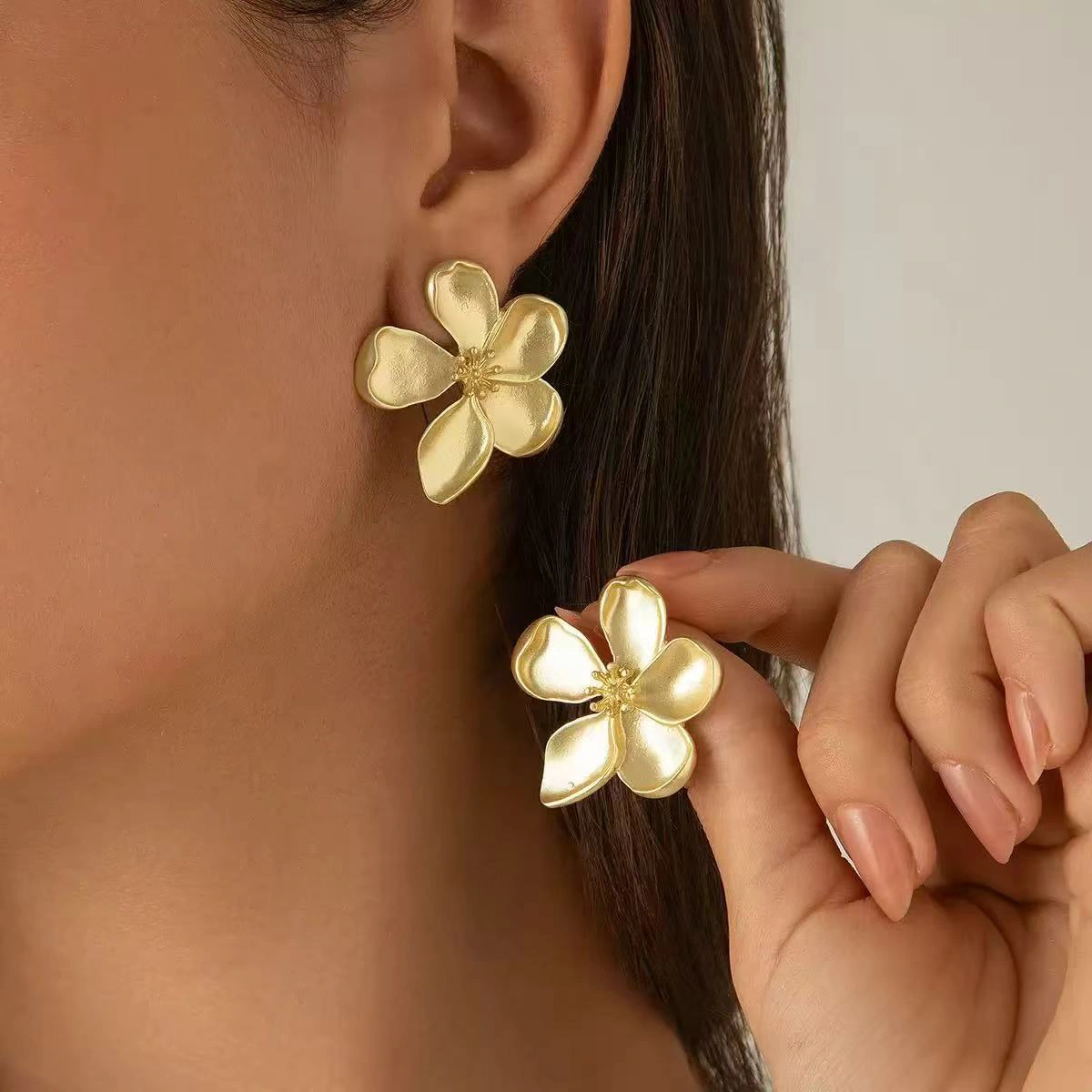 Pair of gold flower earrings. Lightweight design. Perfect for adding a touch of elegance to any outfit. Never used.Available.