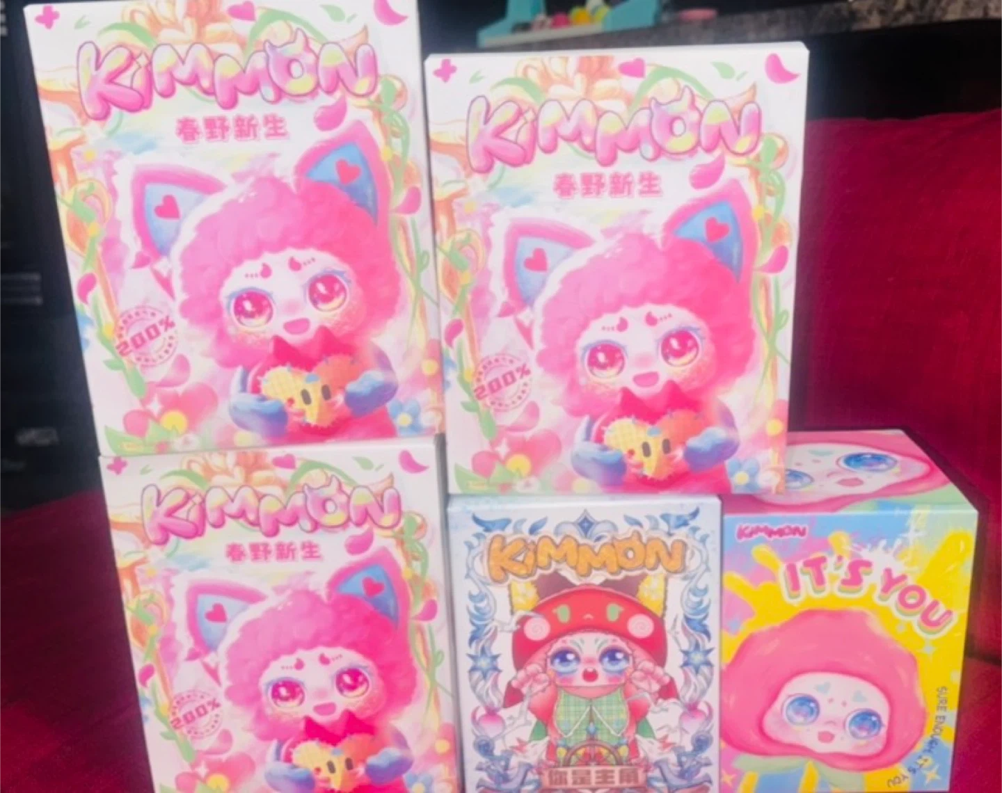Set of Kimmon collectible blind box toys. Each box features unique character designs. Great for collectors and fans of cute, stylized figures!