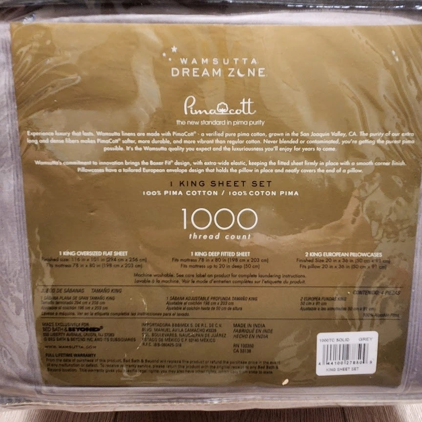 WAMSUTTA Dream Zone King 1000 TC PimaCott Grey Sheet Set