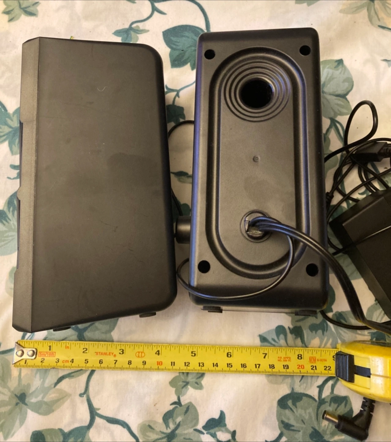 Pair of black computer speakers. Includes power adapter. Wired connection. Sound quality: 11W stereo subwoofer; design: dynamic lights; bass control: independent bass control for customized sounds; connectivity: via 3.5mm audio interface + USB powered; cable length: 112 cm connecting cable+155cm USB powered cable; compatibility: with most devices w/ 3.5mm output.