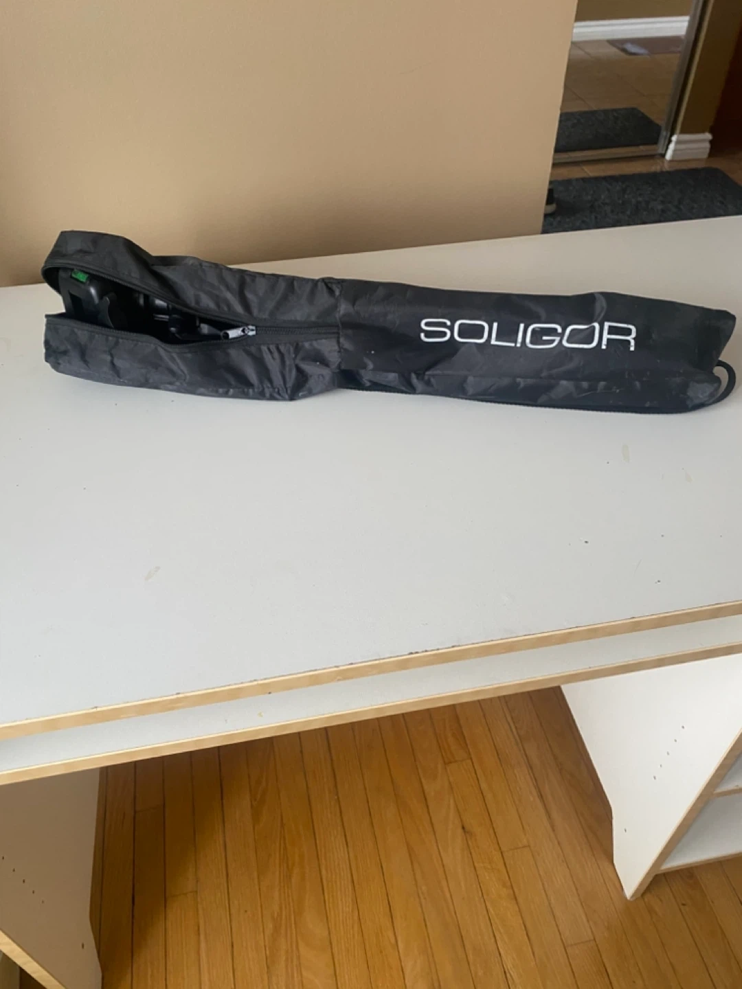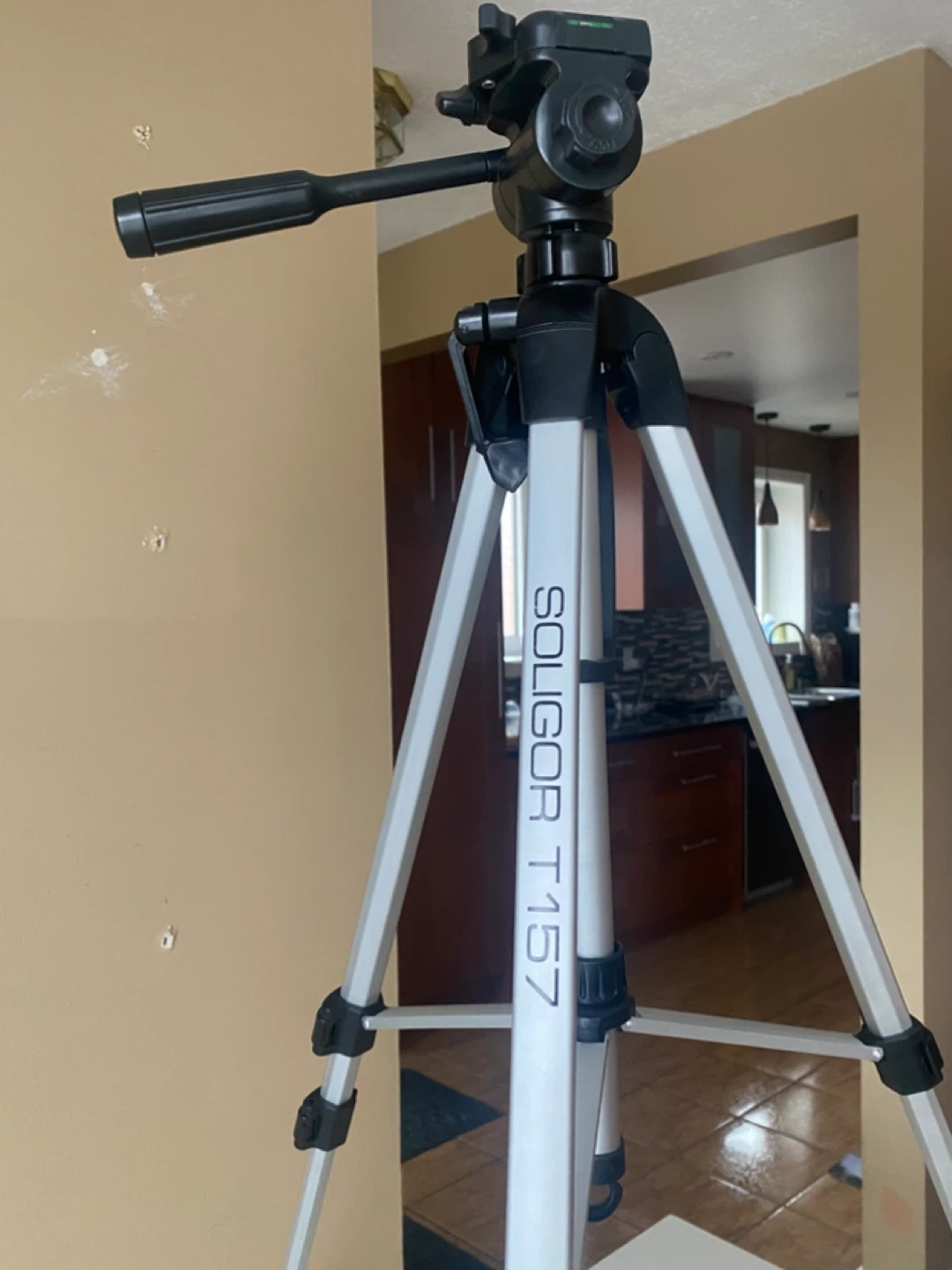 This is a Soligor T157 tripod. It's silver and black with a black carrying case. The legs are adjustable. In very good condition.