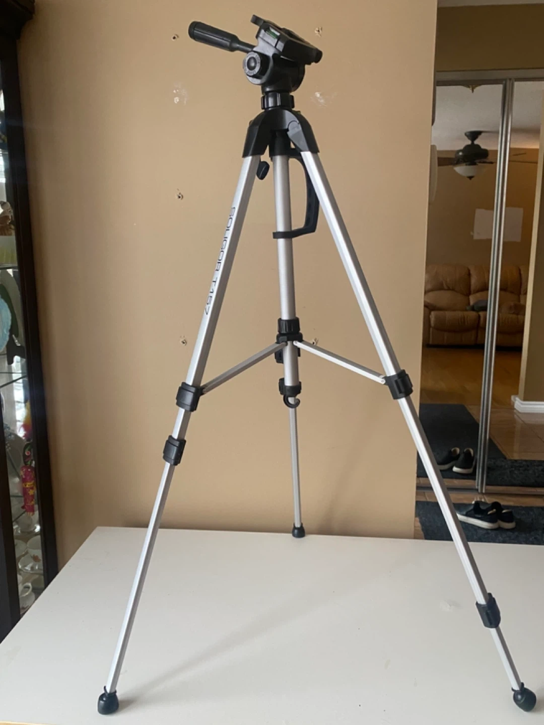 This is a Soligor T157 tripod. It's silver and black with a black carrying case. The legs are adjustable. In very good condition.