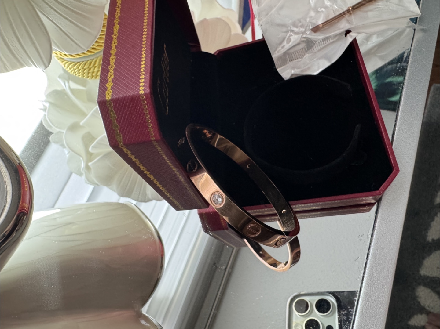 Buy & SellCartier BraceletCartier Bracelet$45HQR 1.1 Brand new in box Rose goldConditionNewWHERE TO MEETStarbucksView MapSELLERSandraWestney Heights595 reviews3 chats·0 favorites·58 viewsSEND CHAT TO SELLERHi Sandra! I’m interested in your listing.Hi Sandra! I’m interested in your listing.Get the Karrot app to chatSign In to chat