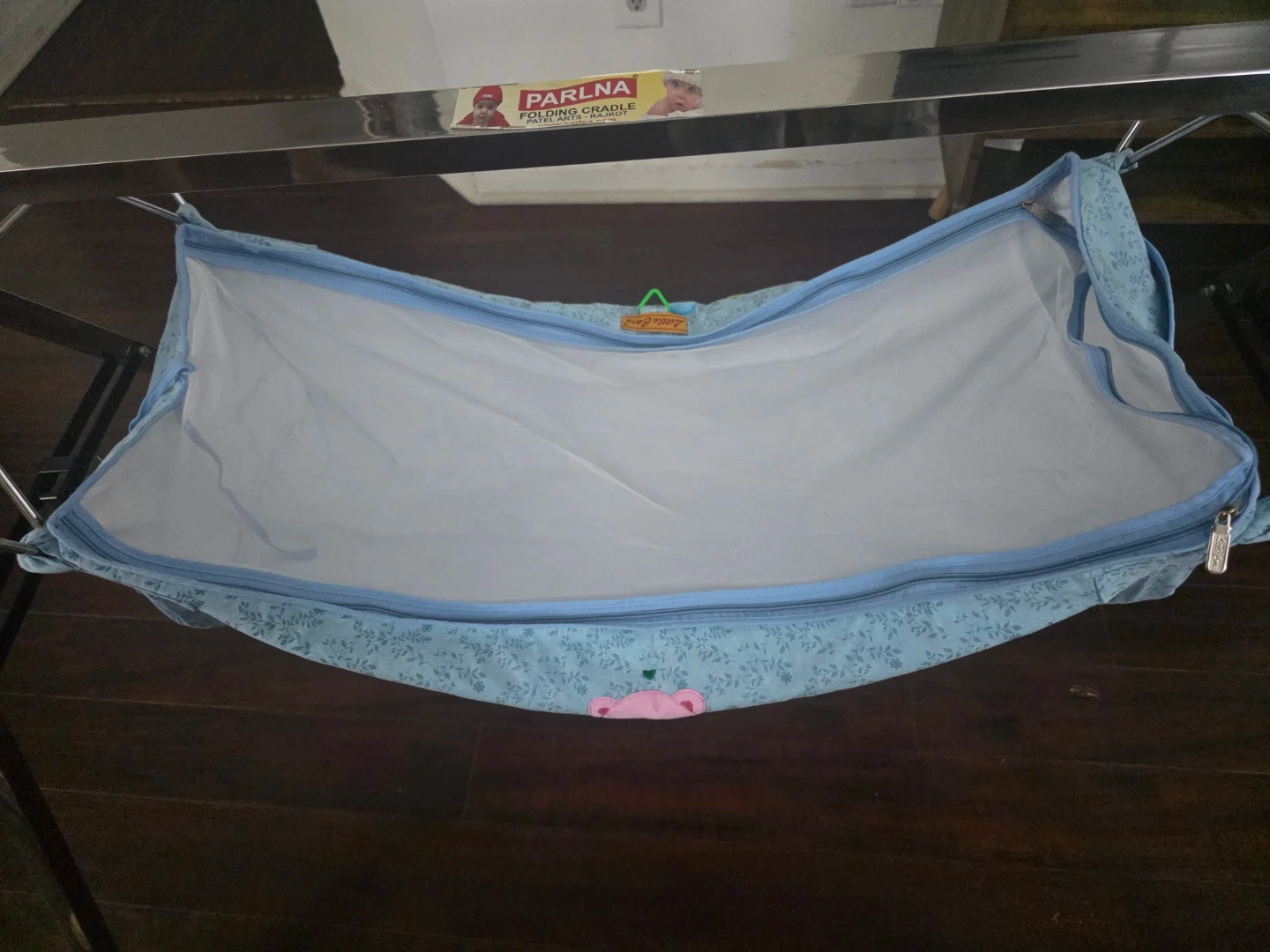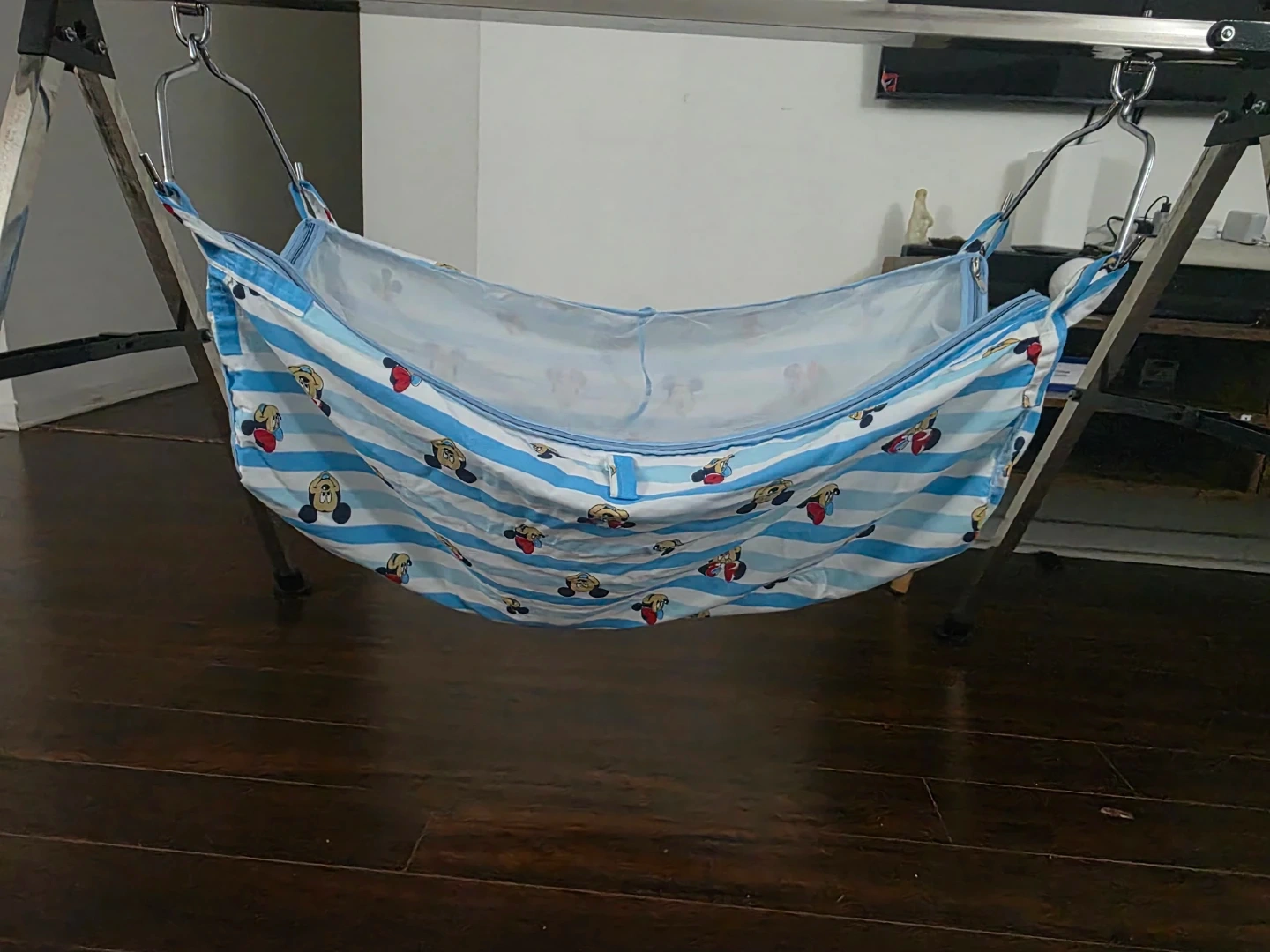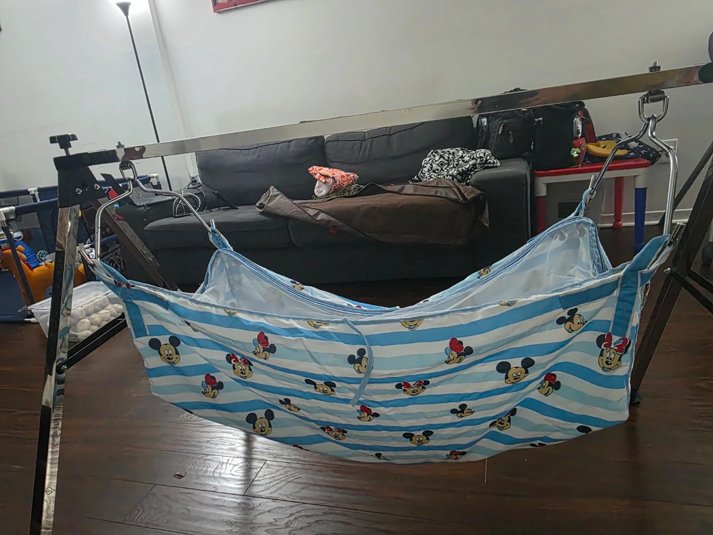 Features a cute Mickey Mouse pattern and a mosquito net. Fabric material.