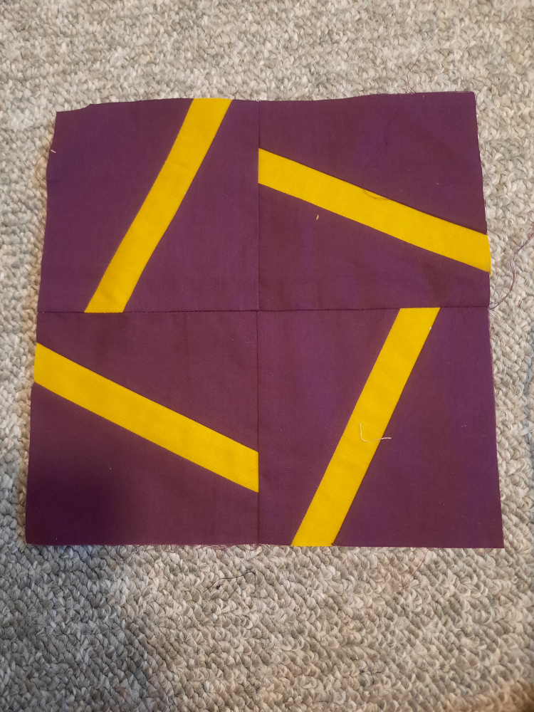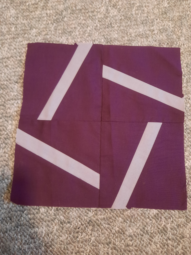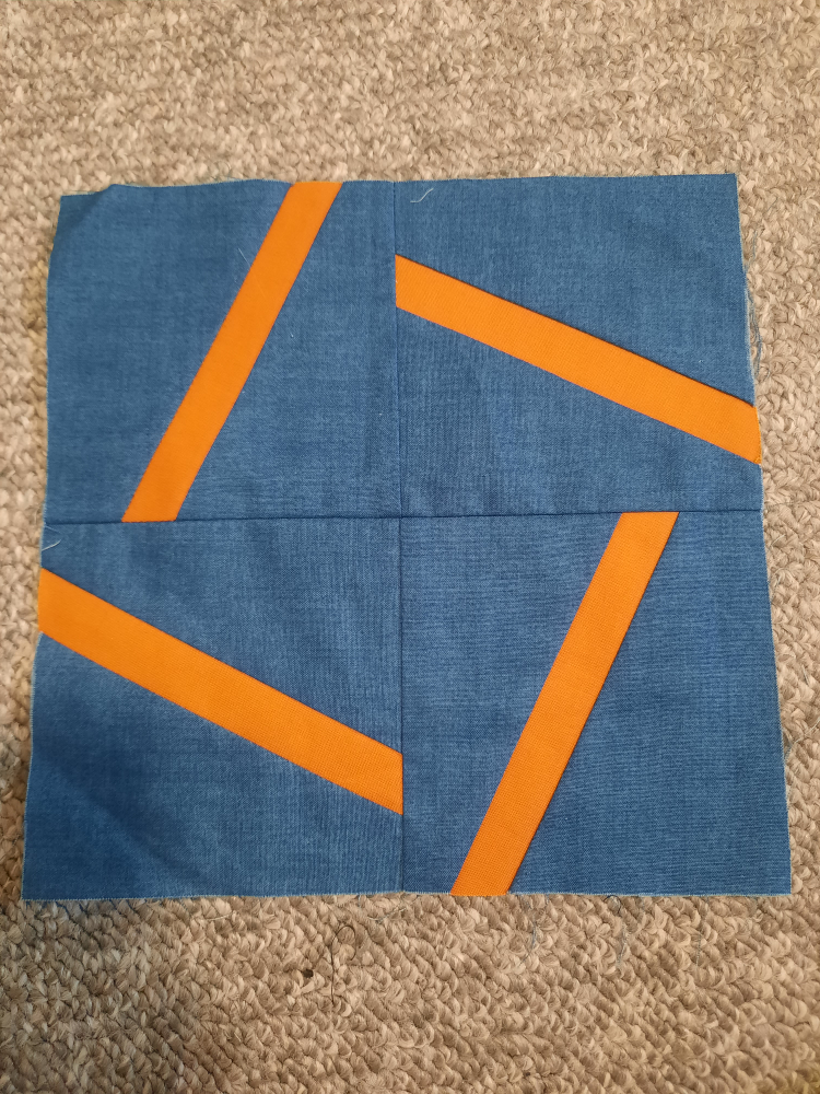 Selling a handmade quilt block, perfect for your next quilting project! It features a unique geometric design with contrasting colours. Great for adding a personal touch to any quilt