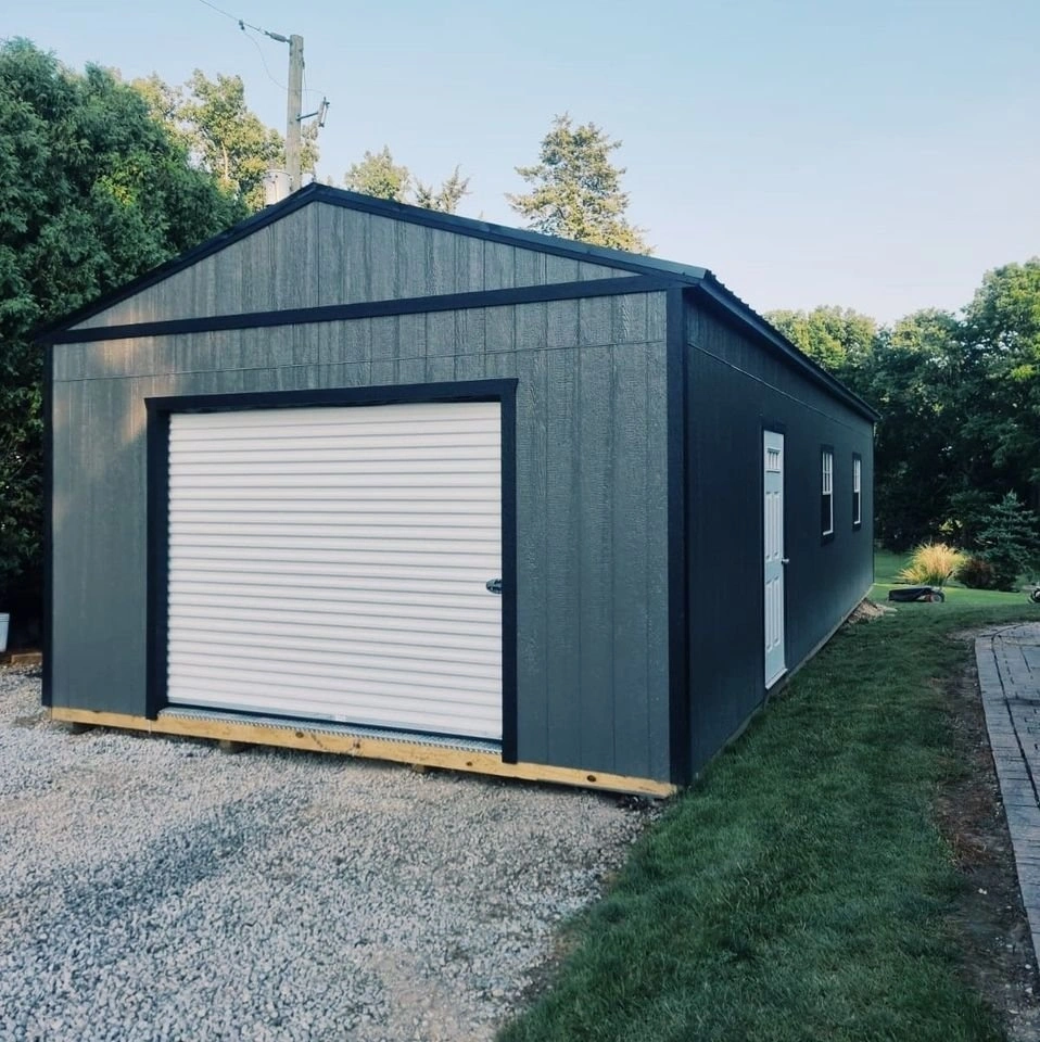 16x40 Premier Garage, Mennonite Built in Ontario. Original Price - $24495 plus tax. Sale Price - $23270.25 plus tax. See 12 wide on our lots. Choose colour, size and layout options. Also ask about our optional upgrades including spray insulation, insulated garage doors (9x7, 9x8, 10x8). Wide Load Fee required for 16 and 14 wide. Includes pilot cars and MTO permits. Fee is based on delivery location. Feel free to text or email with any questions! I'd be happy to serve you! GARAGE FEATURES: - One (1) 9'x7' roll-up door - One (1) 36"x70" 4-lite door - 2 3x3 Windows with screens - 2"x6" pressure-treated floor joists spaced 12" on center - 3/4" Premium LP water resistant flooring - Urethane Siding - Wall studs 16" OC and double studded - Truss plates are used on ALL JOINTS for maximum stability - 92" wall height - 50 year warranty on siding - 30 year warranty on roof - 5 year craftmanship warranty. All of our buildings come with engineered drawings and stamps (free of charge) to meet municipal permit and Ontario building code requirements. Financing Available or Rent To Own. Sales Lots: Home Stretch Meat Market, 122242, Side Rd 12, Owen Sound, ON N4K 5N5; Van Dolders Kitchen and Bath, 1266 16th St East, Owen Sound; Bluewater R.V. Sales LTD., 210 Berford St, St, Wiarton, ON, N0H 2T0. Sold through Multiply Portable Buildings "Serving Grey Bruce and Beyond".