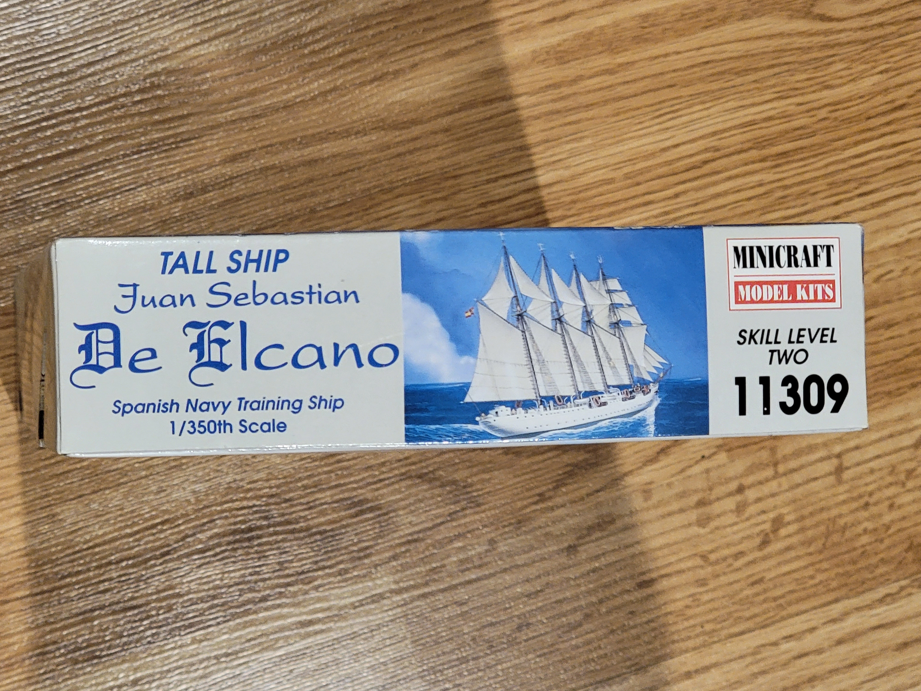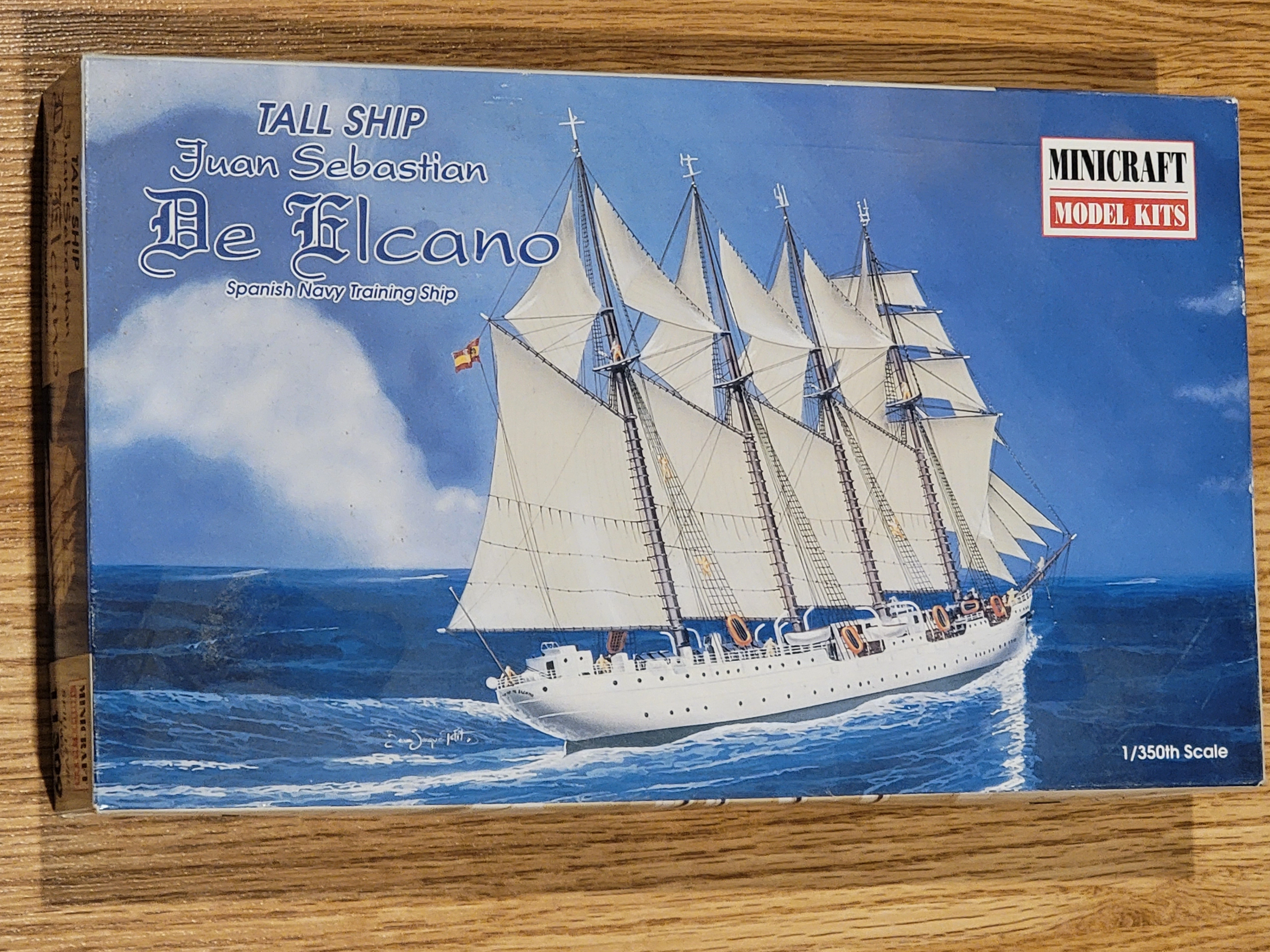 This is the Minicraft Juan Sebastian de Elcano Tall Ship model kit. It's a Spanish Navy training ship. The scale is 1/350th. This kit is for model builders interested in maritime history.