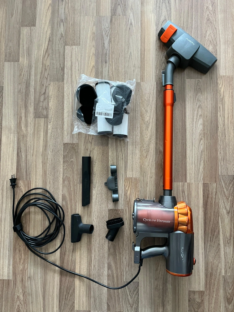 Lightweight corded stick vacuum with strong suction. Comes with all the attachments. Also including 4 HEPA filters for free
