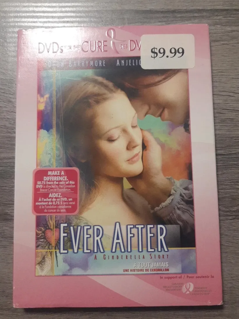 This DVD features the movie Ever After: A Cinderella Story. A portion of the sale supports the Canadian Breast Cancer Foundation. It's a classic Cinderella retelling starring Drew Barrymore.