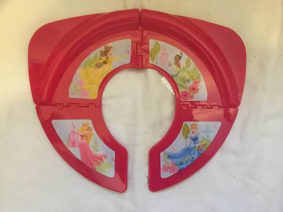 Disney Princess, folding potty seat. Perfect for taking on the go, fits nicely in a purse, backpack or diaper bag. Has foam pads on the bottom somit doesn't slide.