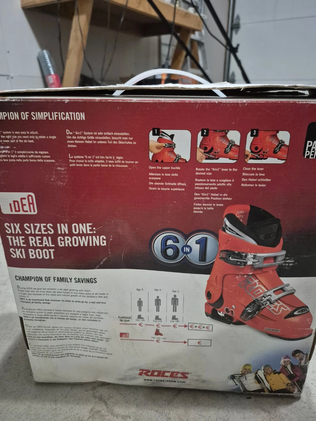 Selling a pair of Roces Idea ski boots that grow with your child's feet! These are the 'Six Sizes in One' model, so they'll last for years. The box is included, and the boots are in great condition. Perfect for growing kids who love to ski
