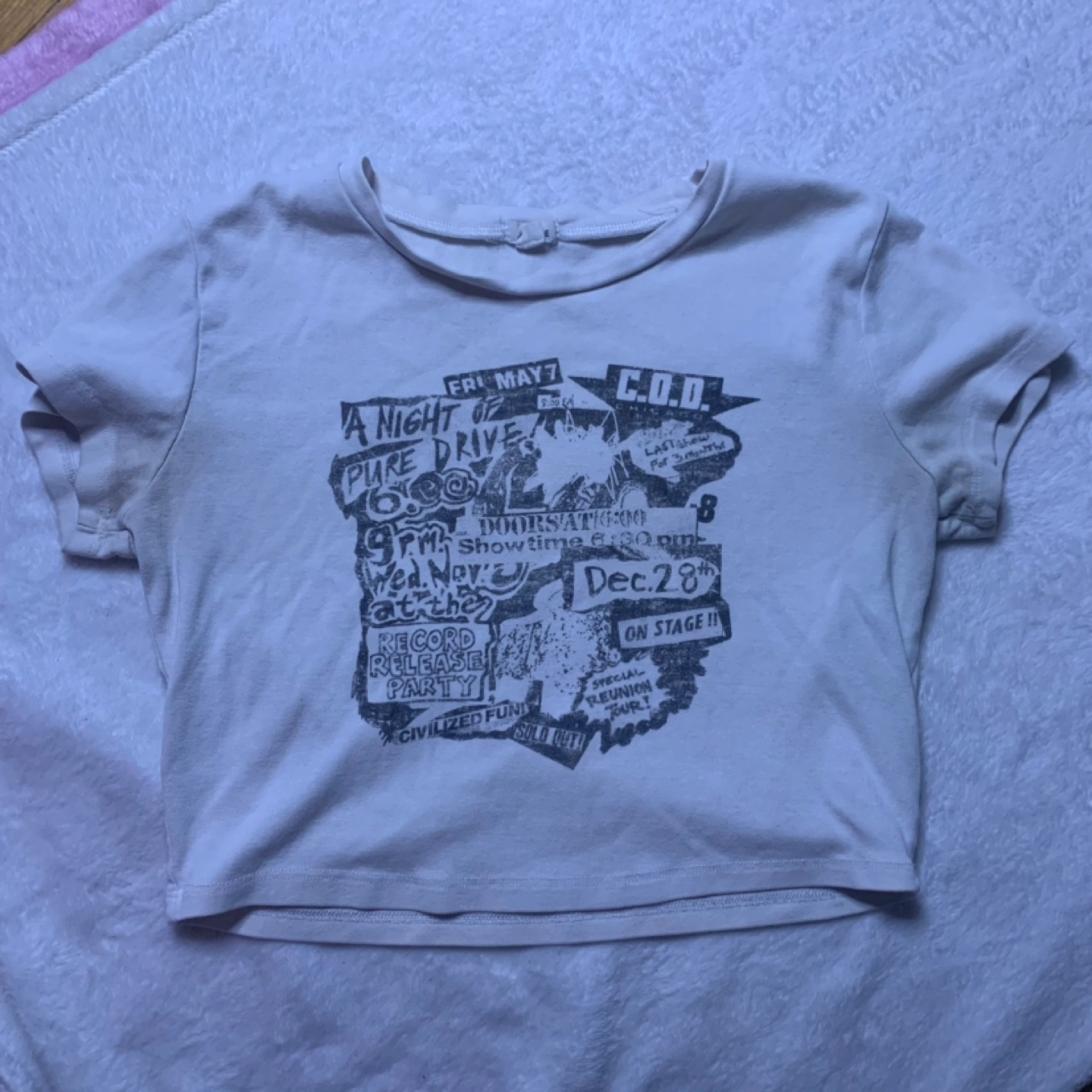 one of my favourite tops, unfortunately was stained blue in the wash and i tried to get it out so it’s faded to an off white with a bit of green 🥲