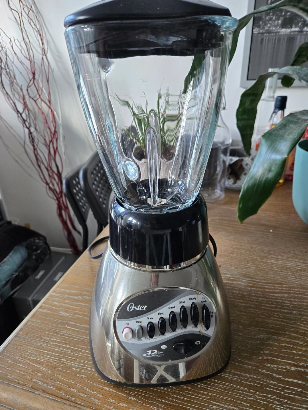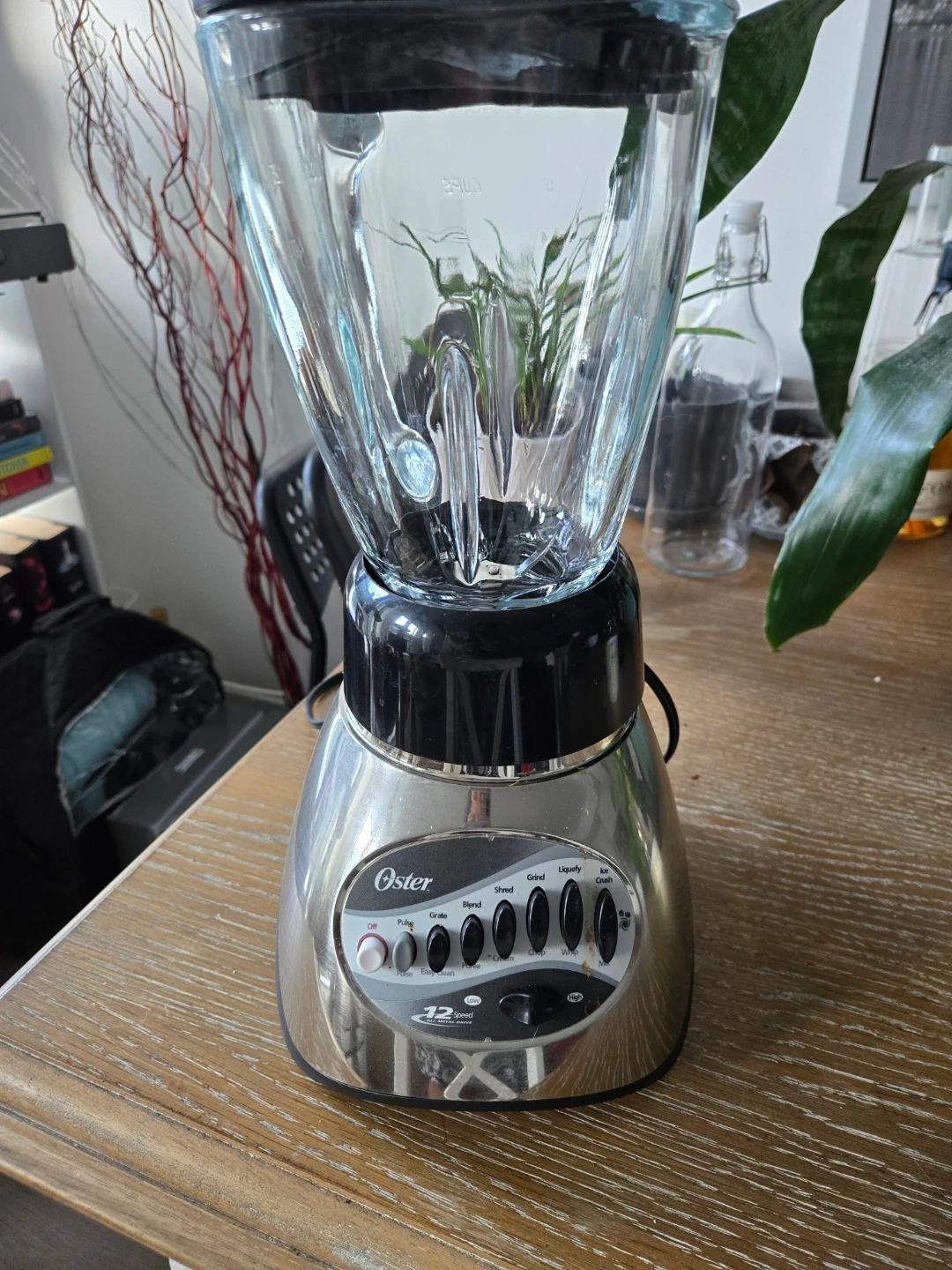 Selling an Oster 12-speed blender. It's in great condition and ready to whip up smoothies or anything else you need! Features include multiple speed settings for blending, pureeing, grating, and more.