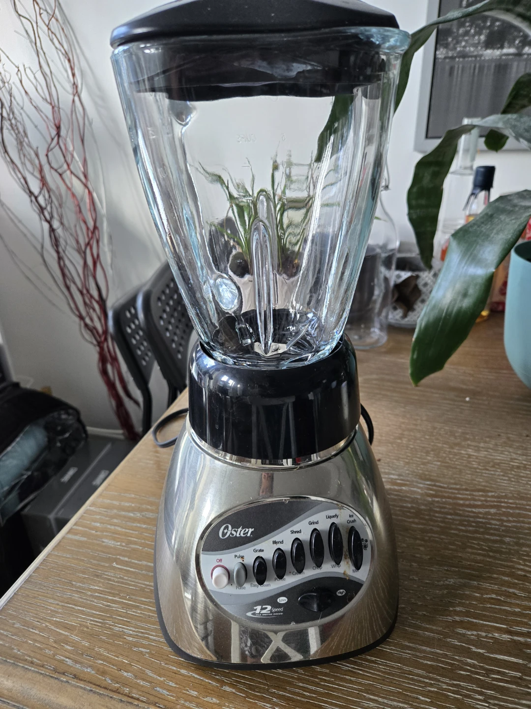 Selling an Oster 12-speed blender. It's in great condition and ready to whip up smoothies or anything else you need! Features include multiple speed settings for blending, pureeing, grating, and more.