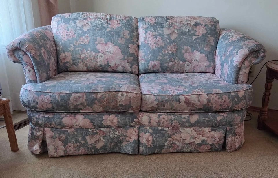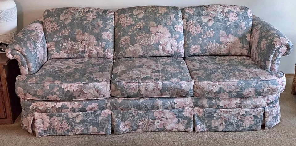 Vintage floral upholstered sofa and love seat with rolled arms and a skirted base. Loveseat is 5 feet x 32 inches. Couch is 81 inches x 32 inches. Asking $200 for the set. Must be picked up by February 20th before an upcoming move. Pickup is on the Southside.