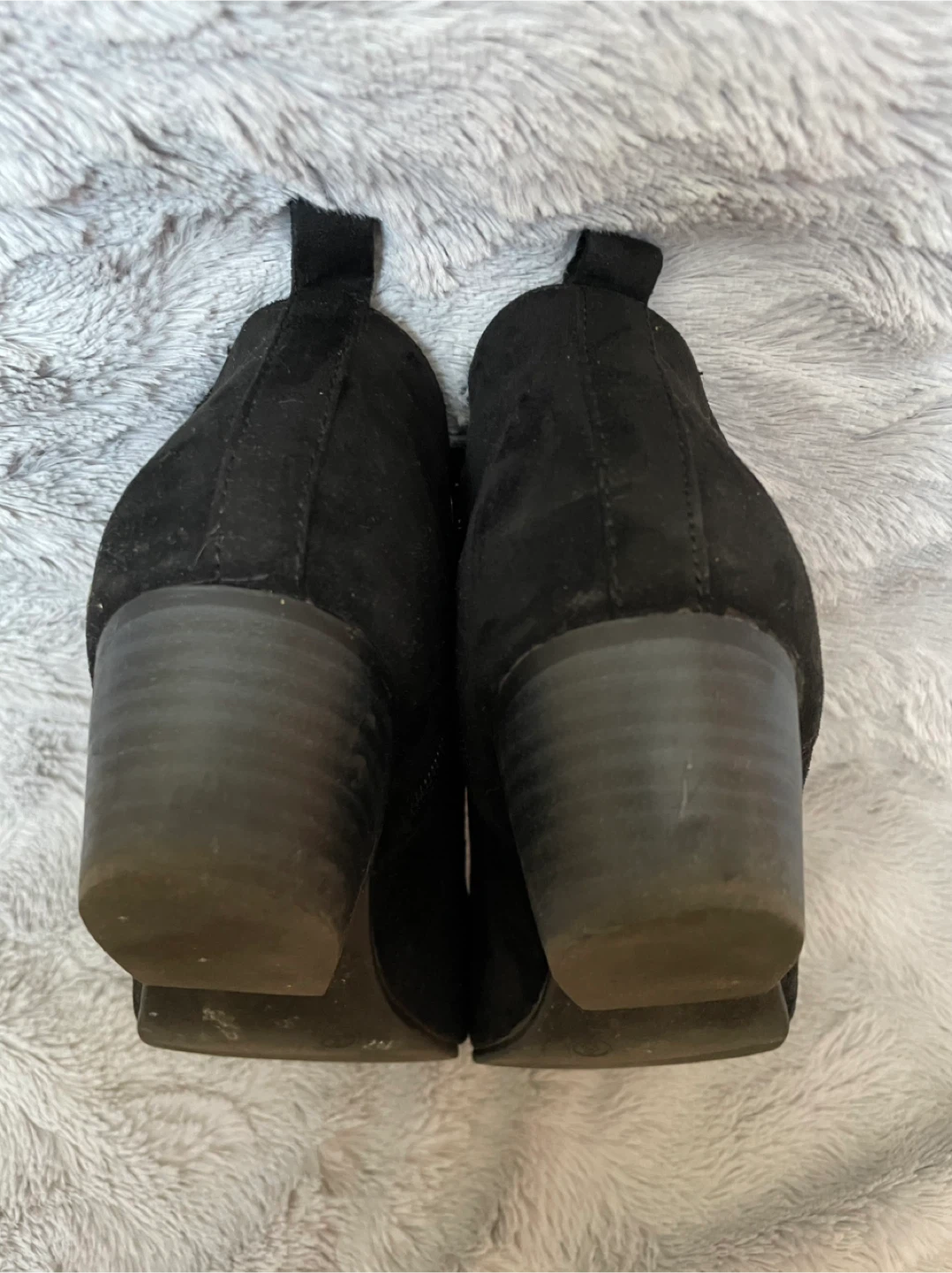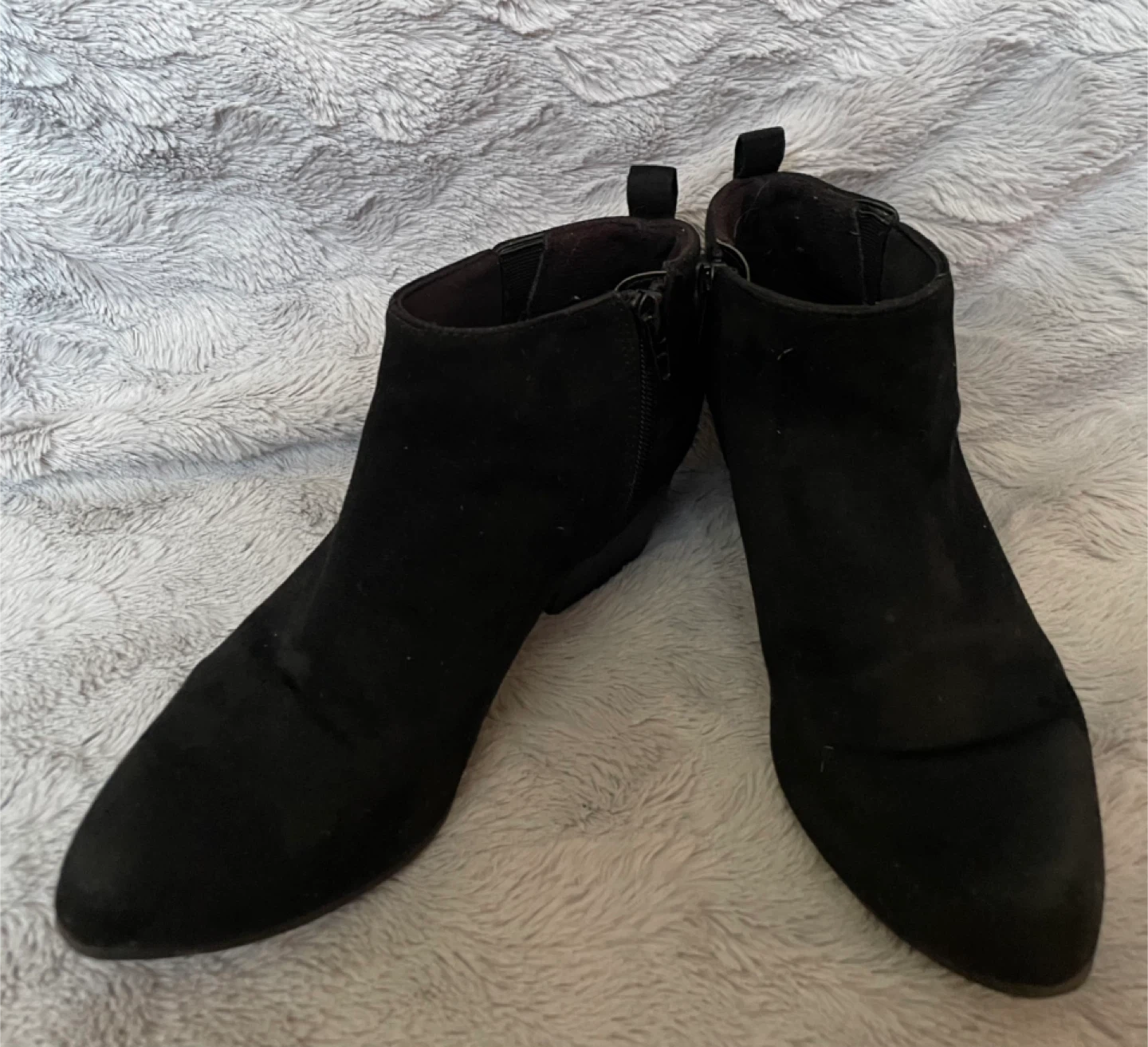 Giving away black ankle boots. They're in good condition and ready for a new home. Zipper on side. Dome signs of wear on the heels