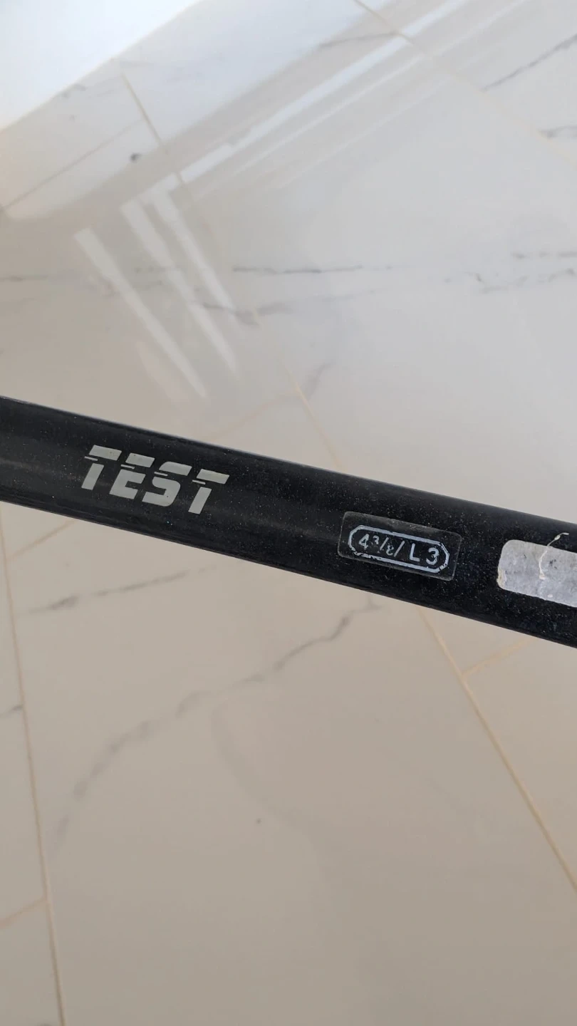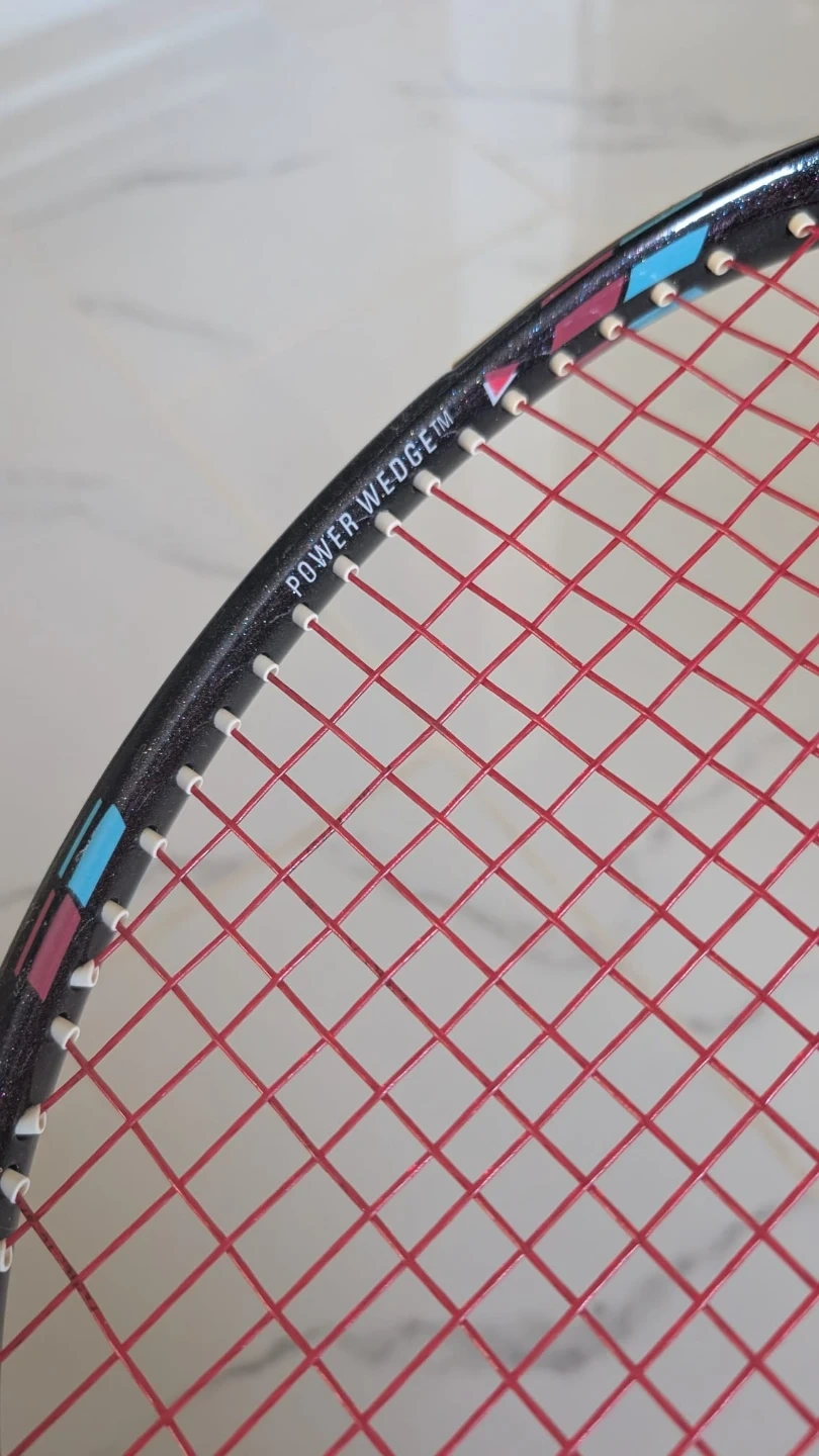 This is a HEAD Graphite Pro tennis racquet with a grip size of L3 (4 3/8). It has red strings and a black frame. Suggested string tension is 24-28 KP (53-62 lbs).