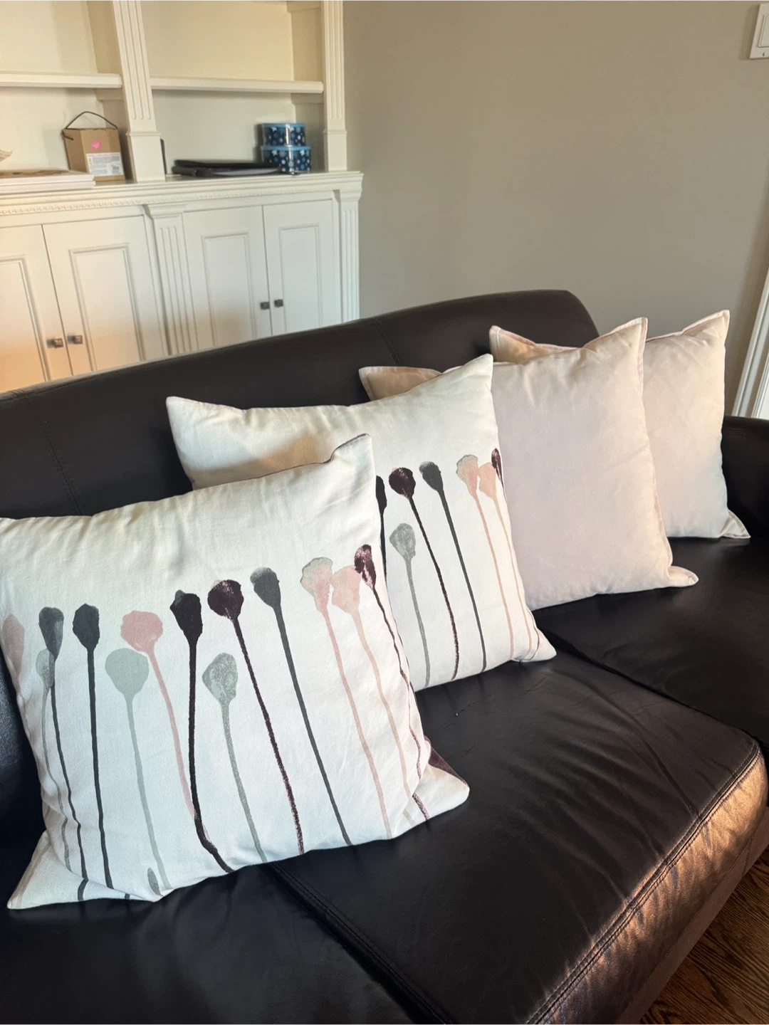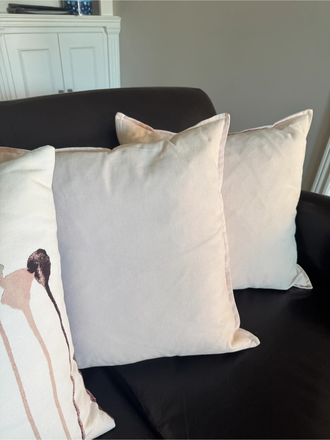 IKEA Four decorative throw pillows in various designs. Two pillows feature a floral stem pattern in neutral tones, and two are solid cream-coloured. They're perfect for adding a touch of comfort and style to your living room or bedroom.