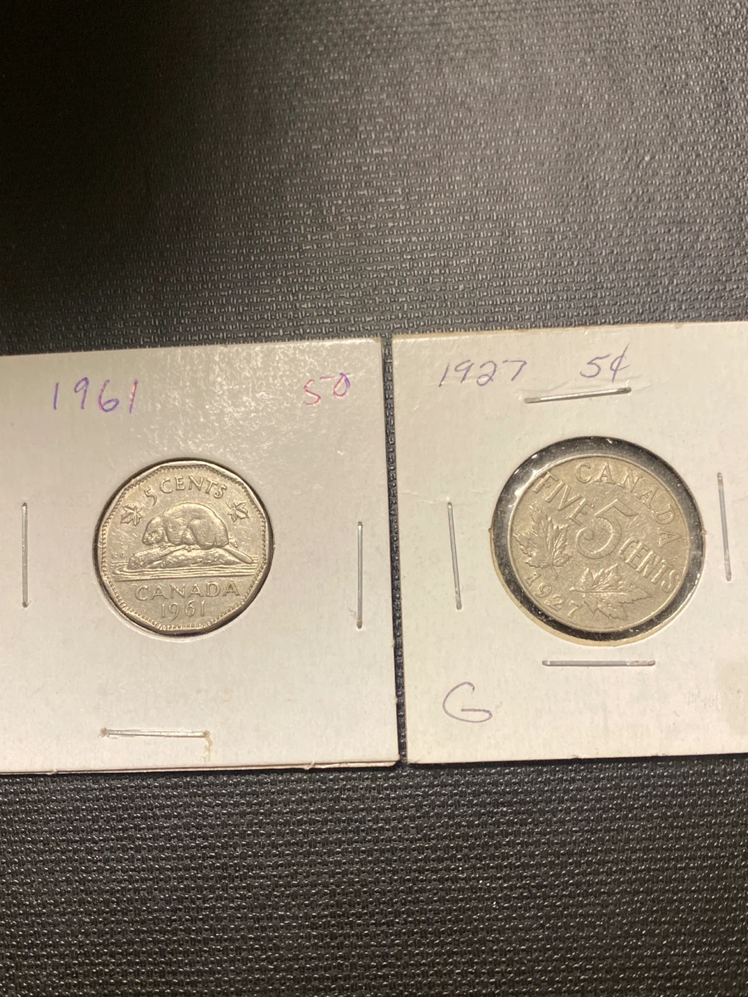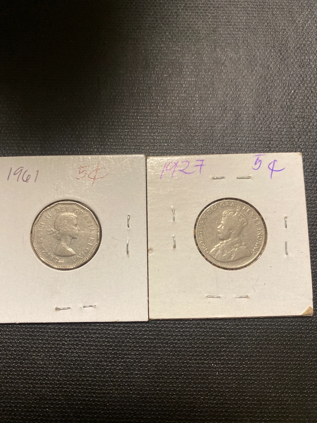 1927 and 1961 Canadian Five Cents Coins