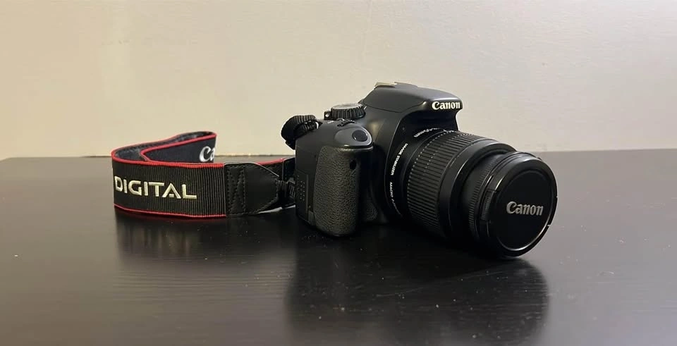 This Canon EOS 550D (Rebel T2i / Kiss X4 Digital) camera features an 18 Megapixel APS-C CMOS sensor and a DIGIC 4 processor with ISO 100-6400 (expandable to 12800). It offers continuous shooting at 3.7fps and Full HD movie recording with manual control. The camera has a 7.7cm (3.0”) Clear View LCD screen, a 63-zone Dual-layer Metering Sensor, and a Quick Control screen for easy setting changes. It also includes an external microphone socket and Eye-Fi connectivity. Comes with a bag.