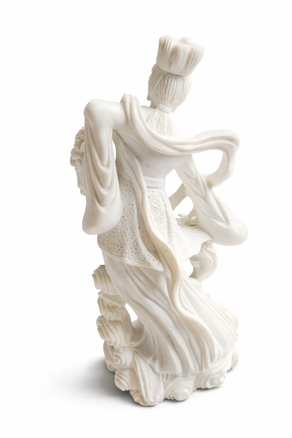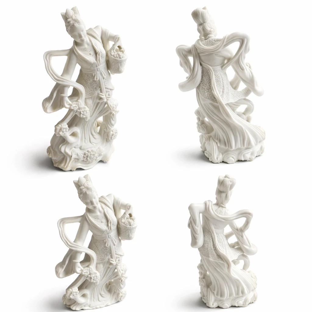 The carving has lovely detail in the robe, basket, flowers, and hair. A great accent piece for a console table, shelf, cabinet, or traditional décor setting.