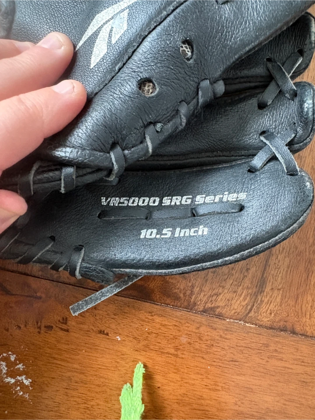 Black leather baseball glove from Reebok. It's a 10.5-inch size from the VR5000 SRG Series. RHT. Pick up is in Burlington.