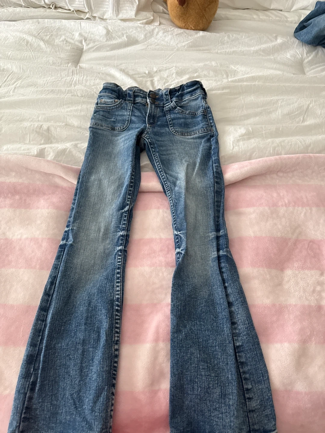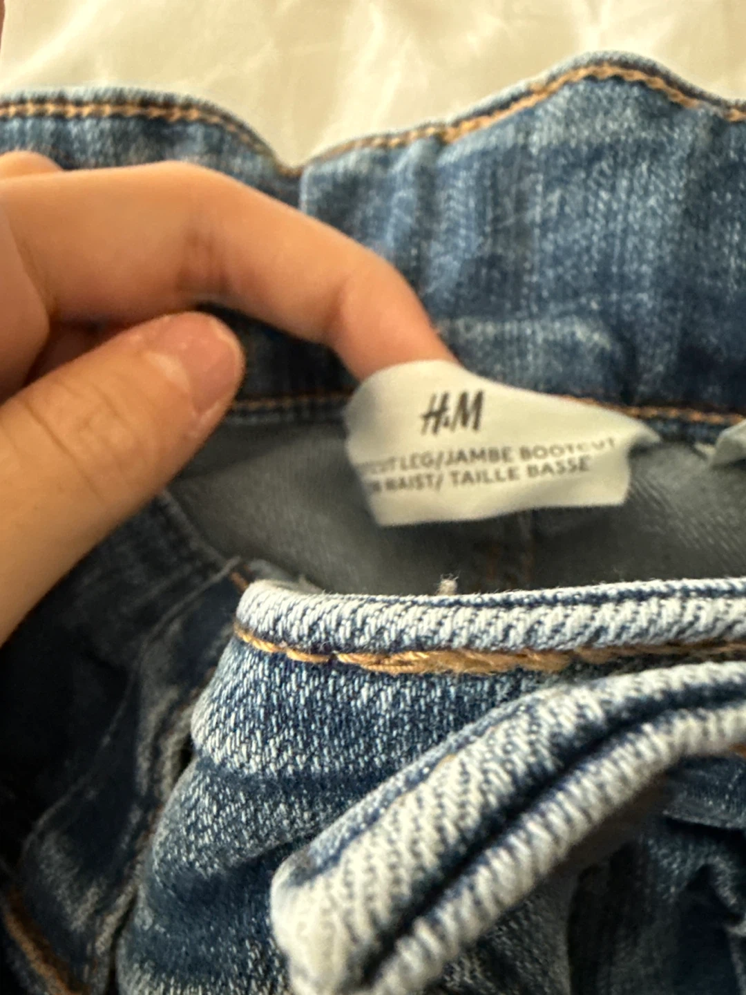Girls' bootcut jeans from H&M in a medium wash blue. These jeans feature a classic five-pocket style with belt loops. Made from a cotton blend for comfort.