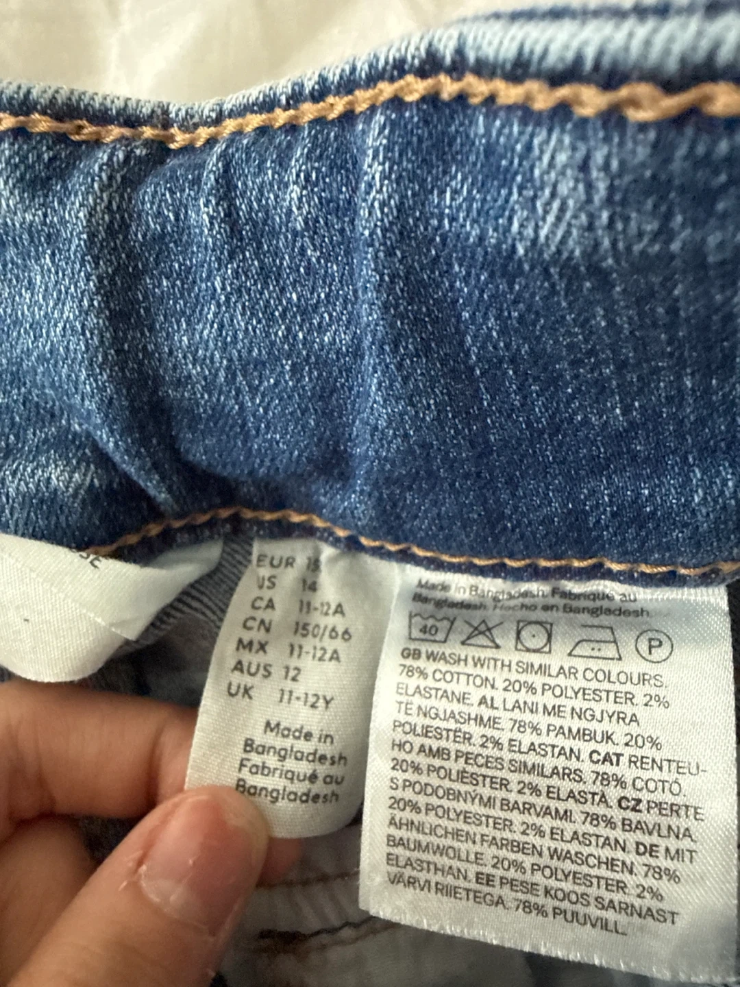 Girls' bootcut jeans from H&M in a medium wash blue. These jeans feature a classic five-pocket style with belt loops. Made from a cotton blend for comfort.