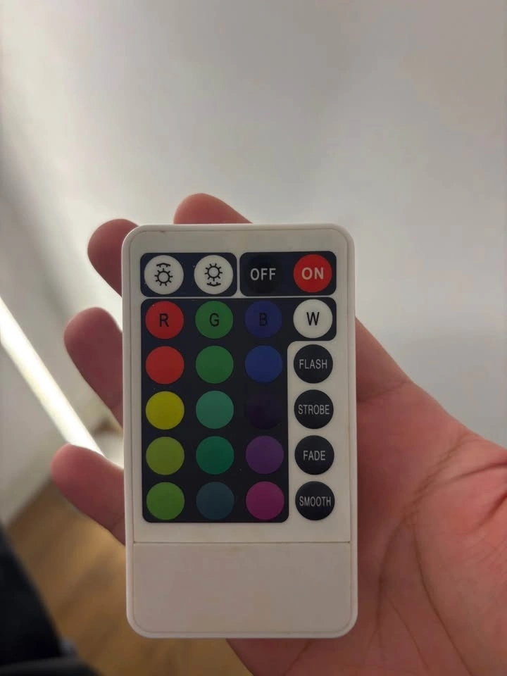 Selling a modern LED light bar, perfect for adding a clean and cozy vibe to your room. Features: RGB color changing (red, green, blue + multiple modes), Comes with remote control (easy to switch colors & effects), Adjustable brightness, Modes: flash / strobe / fade / smooth, Slim, minimal design – great for corners, Creates soft ambient lighting (perfect for bedroom, gaming setup, or living room). Condition: Very good, fully working. Use: Ideal as background/mood lighting (not for main lighting).