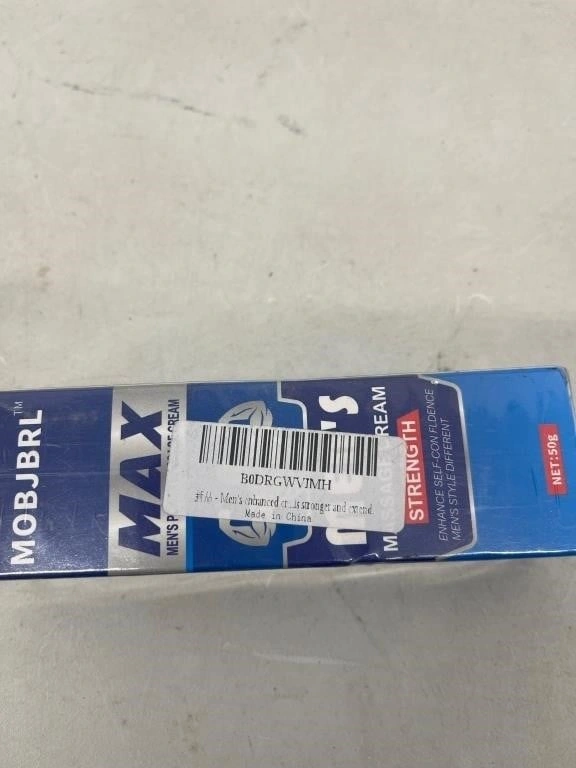 Selling a tube of MOBJBRL Max Men's Power Massage Cream. It's a 50g tube designed to enhance self-confidence and give men's style a different edge. New and still in its packaging.