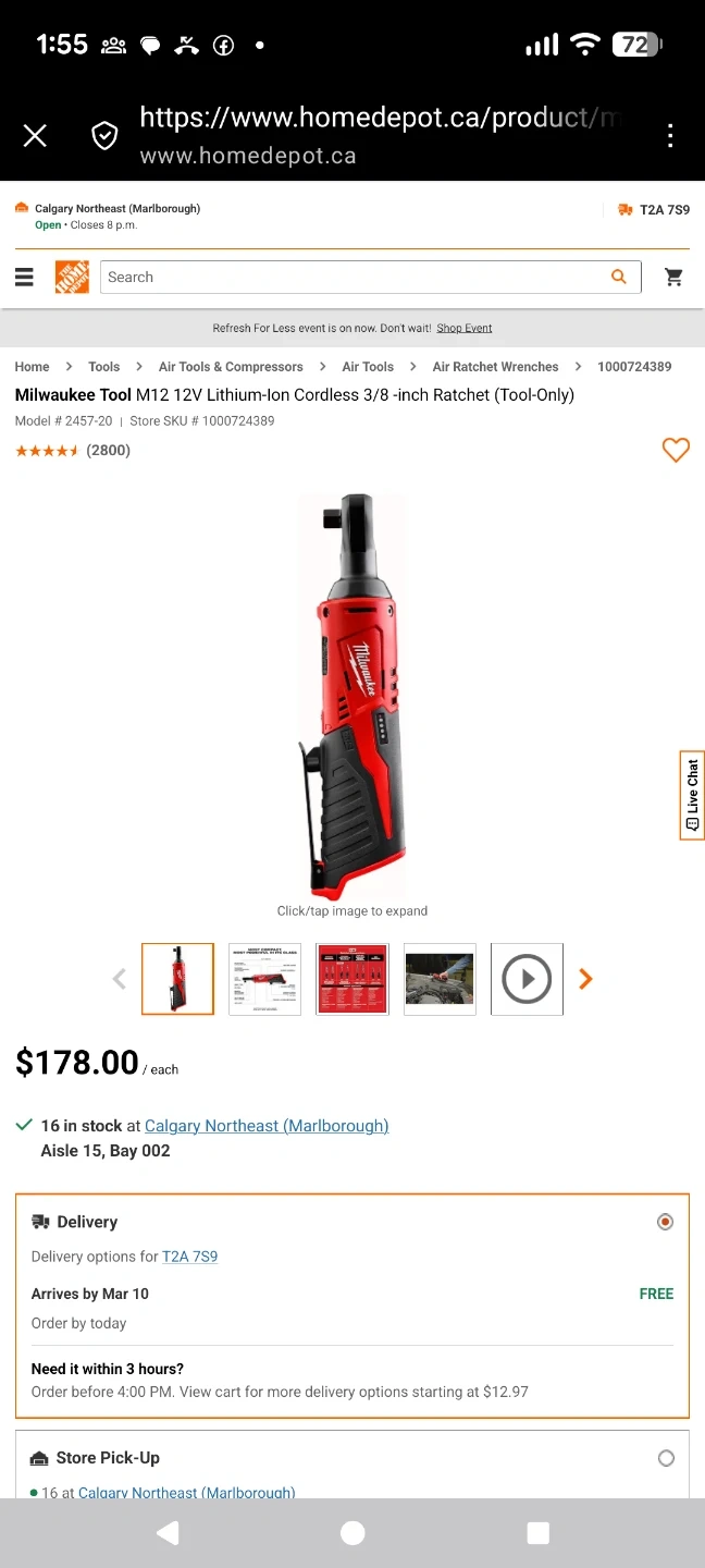 Buy & SellMilwaukee M12 12V Cordless 3/8-inch RatchetMilwaukee M12 12V Cordless 3/8-inch Ratchet$100Cordless 3/8-inch ratchet. Includes battery charger. Tool-only version.ConditionLike newWHERE TO MEETCheck LocationView MapSELLERverifiedJustin RossCity Hall620 reviews3 chats·1 favorites·12 viewsSEND CHAT TO SELLERHi Justin Ross! I’m interested in your listing.Hi Justin Ross! I’m interested in your listing.Get the Karrot app to chatSign In to chat
