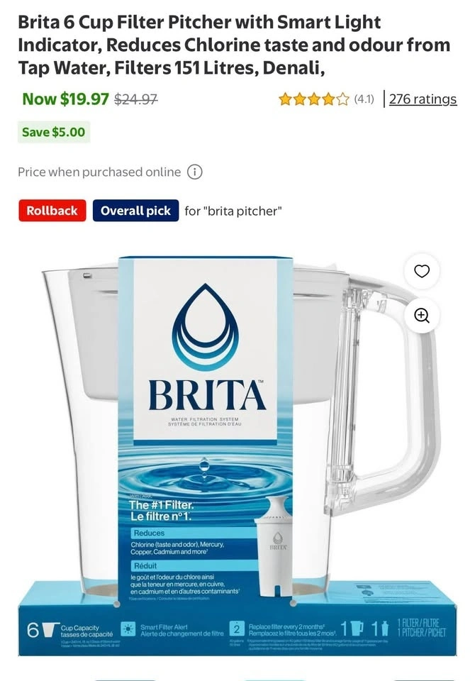 Buy & SellBrita Water Filter with Extra FilterBrita Water Filter with Extra Filter$10Selling Brita water filter jug with an additional filter. Size: 6 cups. The jug alone is $20 at Walmart.WHERE TO MEETCheck LocationView MapSELLERGessEglinton E100 reviews1 chats·0 favorites·3 viewsSEND CHAT TO SELLERHi Gess! I’m interested in your listing.Hi Gess! I’m interested in your listing.Get the Karrot app to chatSign In to chat