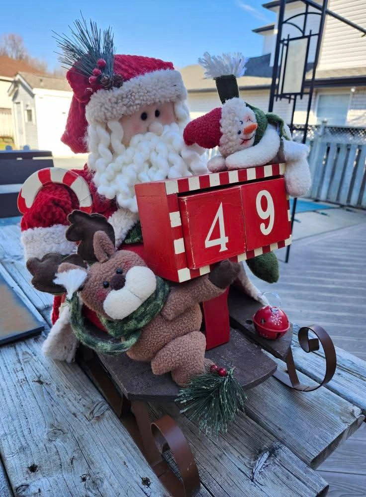 Holiday countdown Santa on a sled with wooden blocks. Pick up in Kitchener, $25