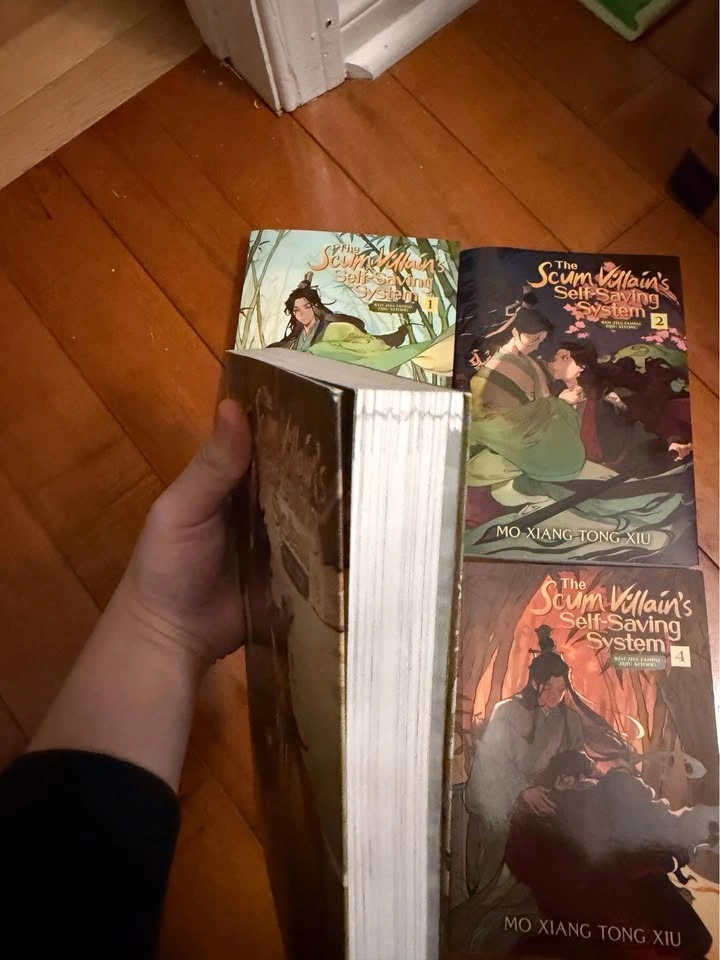 The full Scum Villain Self-Saving System (SVSSS) softcover novel set. If you're a fan of Danmei, Yaoi, or BL, this is perfect for you. Vol 3 has a slight indentation on the corner but it's in very good quality. Other novels are read through once or twice and are in very good condition too. I'm looking to buy the hardcover novel set, so I'm selling my softcover set.