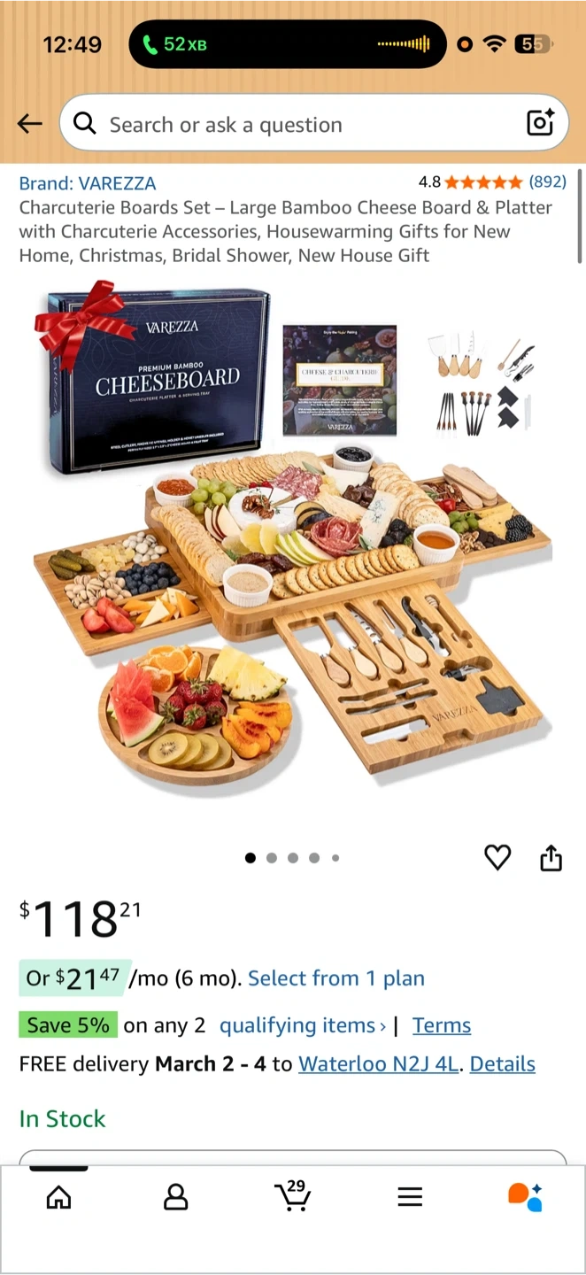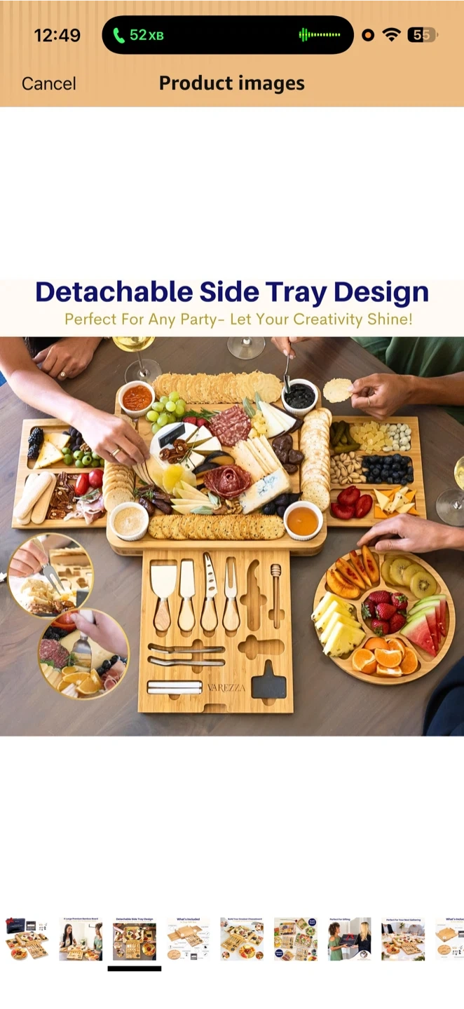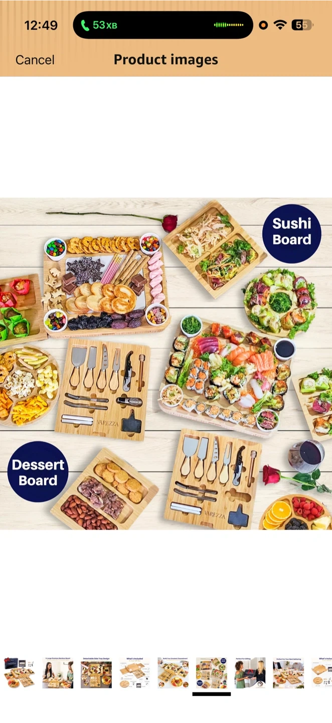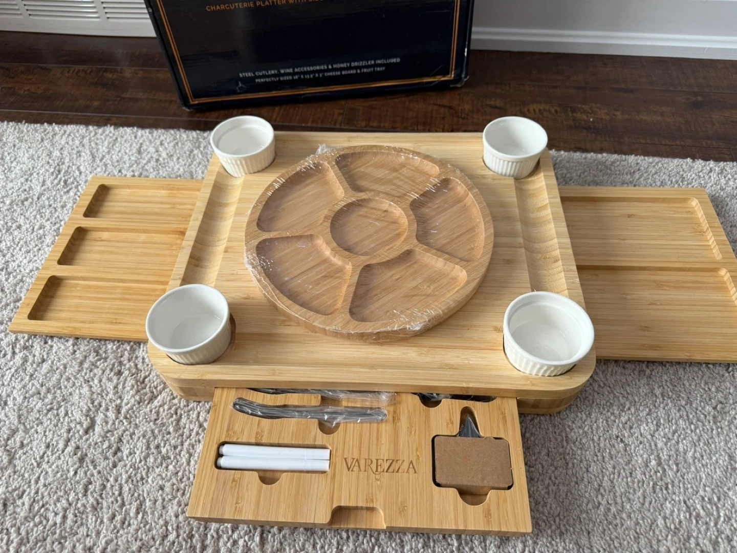Beautiful X-Large bamboo charcuterie board set with detachable side trays and full accessory drawer. High-rated set on Amazon (retails for $118+).