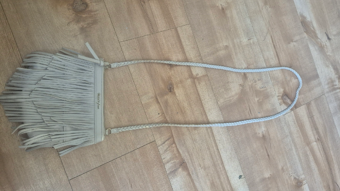 This Wild & Free crossbody bag features a stylish fringe detail. It has a braided strap for comfortable wear. Perfect for adding a boho touch to any outfit!