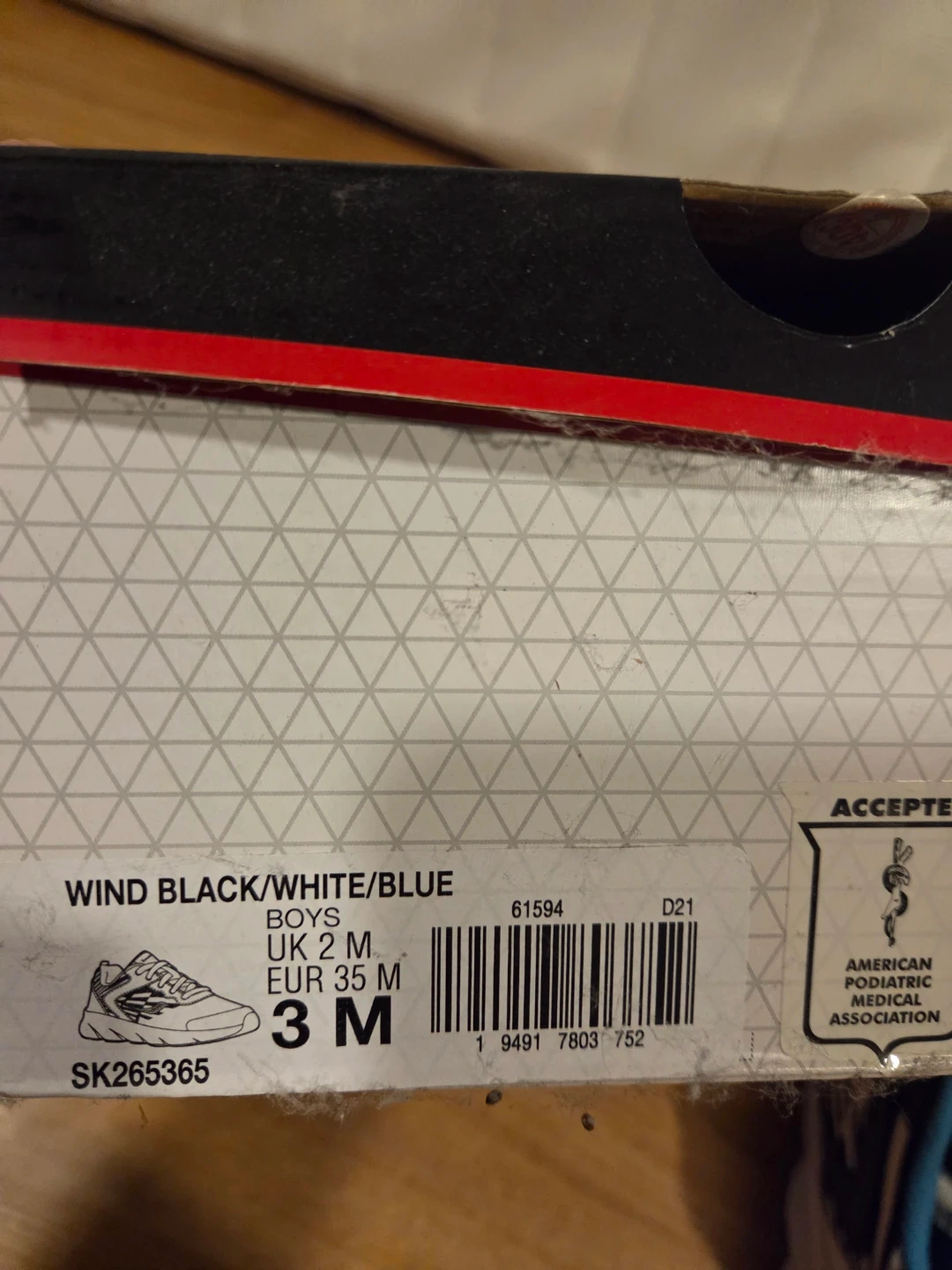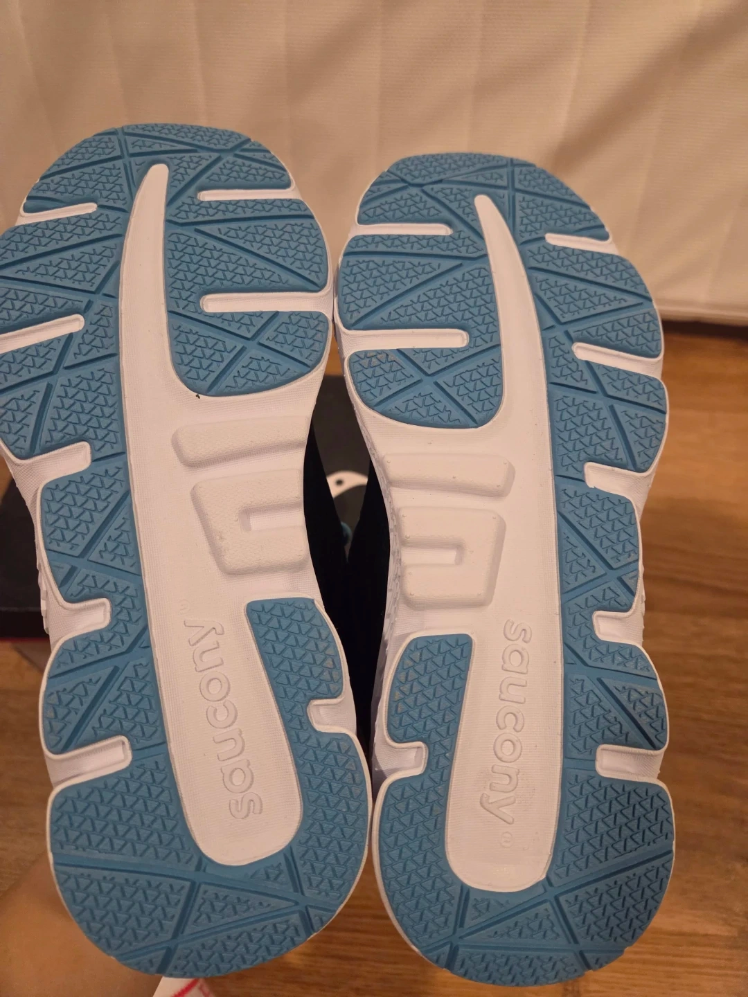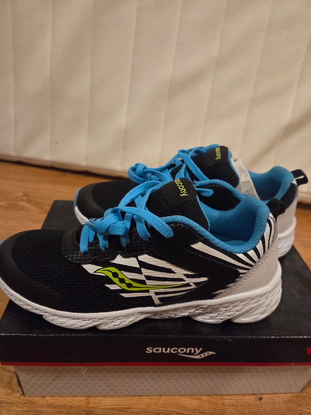 Saucony boys running shoes in black, white, and blue. These are size 3 youth. Brand new in box!
