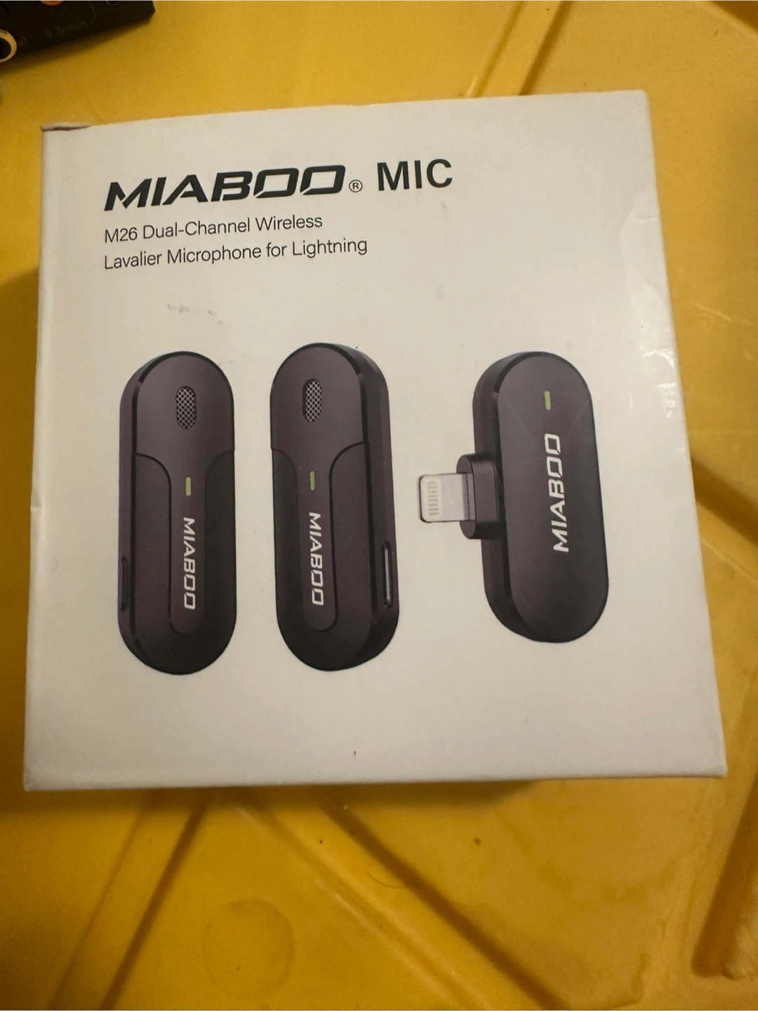 This MIABOD M26 system includes a dual-channel wireless lavalier microphone designed for Lightning devices. It offers 100% original sound restoring and DSP noise reduction. The system is suitable for broadcast, live-streaming, interviews, vlogging, and TikTok.