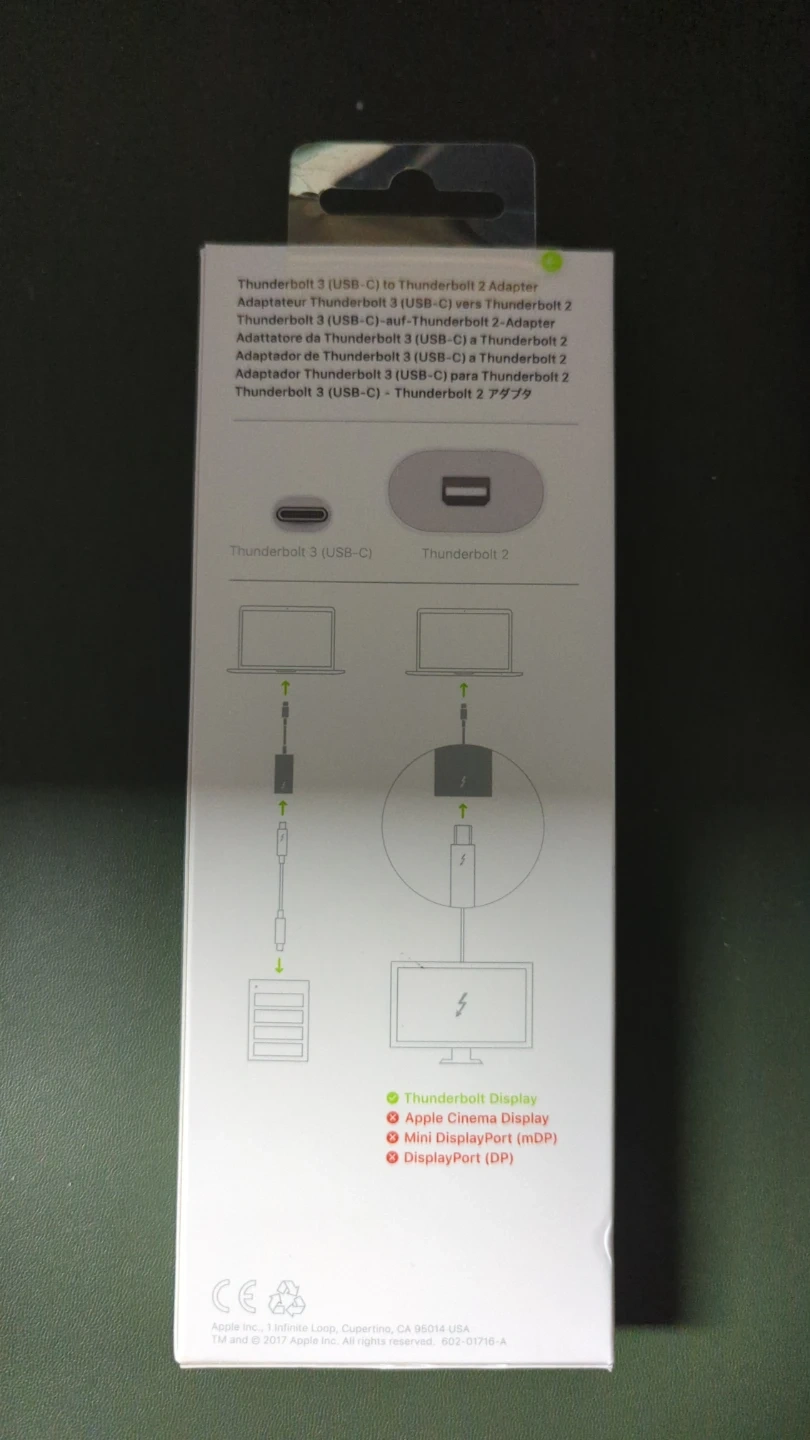 Selling an Apple Thunderbolt 3 (USB-C) to Thunderbolt 2 Adapter. It's brand new with the original box. This adapter allows you to connect devices with Thunderbolt 2 ports to your Mac with Thunderbolt 3 (USB-C) ports. Perfect for connecting older displays or peripherals!