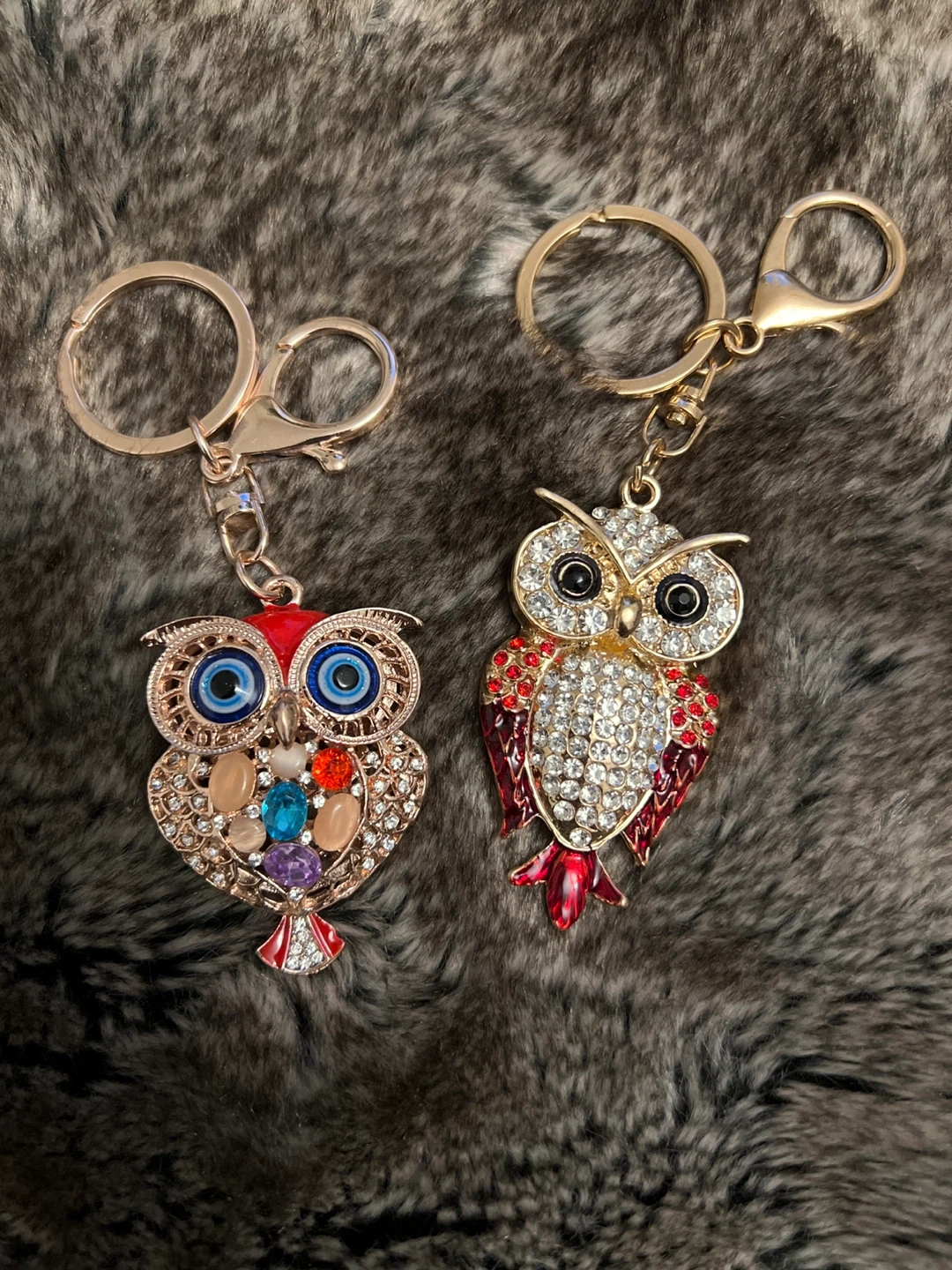 These owl keychains are super cute and sparkly! They're perfect for adding a bit of charm to your keys or bag.
