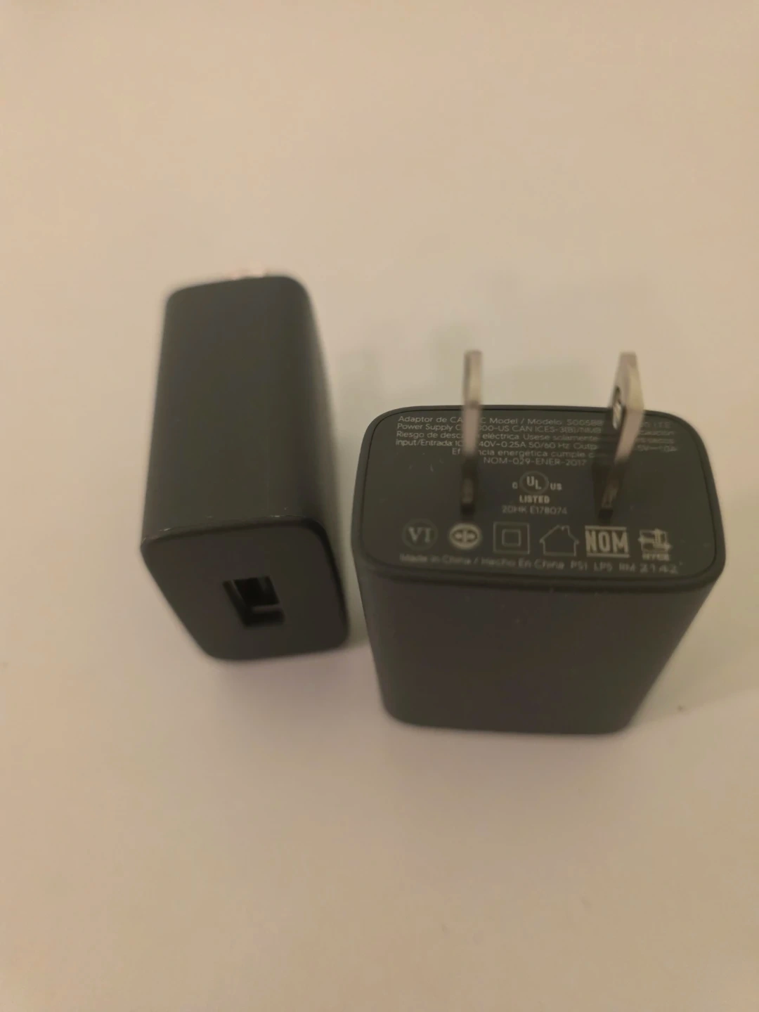 Includes 10 power supply adapters. Made in China. Model/Modelo: B502000100. Input/Entrada: 100-240V~50/60Hz 0.5A. Output/Salida: 5V 2A.