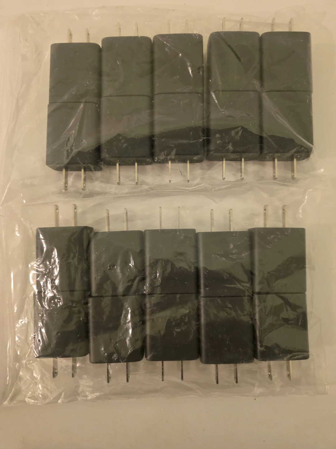 Includes 10 power supply adapters. Made in China. Model/Modelo: B502000100. Input/Entrada: 100-240V~50/60Hz 0.5A. Output/Salida: 5V 2A.
