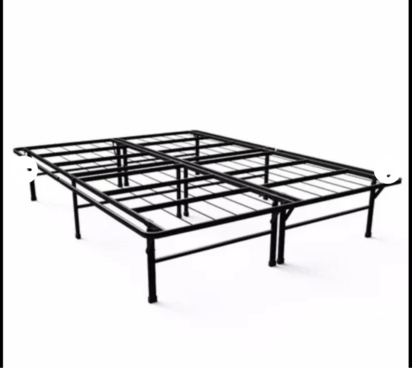 Sturdy metal bed frame offering excellent support. It's made of durable metal and comes with legs for easy setup. Supports a mattress without a box spring. King size
