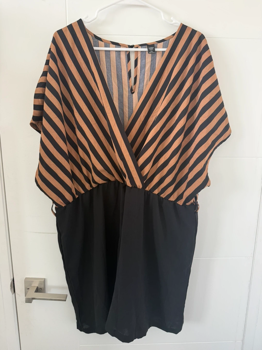 SHEIN Curve 3XL Striped Black and Brown Jumpsuit