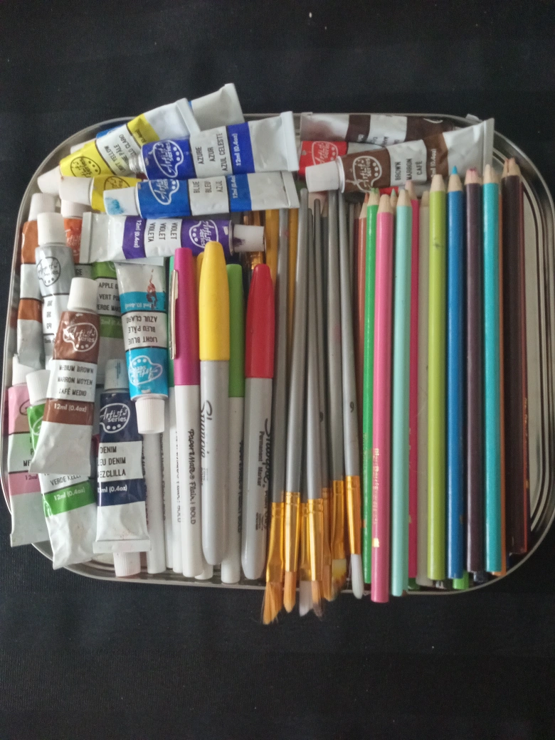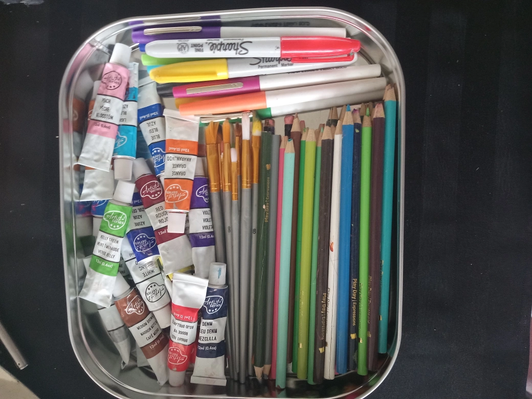 Crayons, markers, paints and paint brushes. Most of the stuff are slightly used . Anyone who likes to paint they can be yours free.