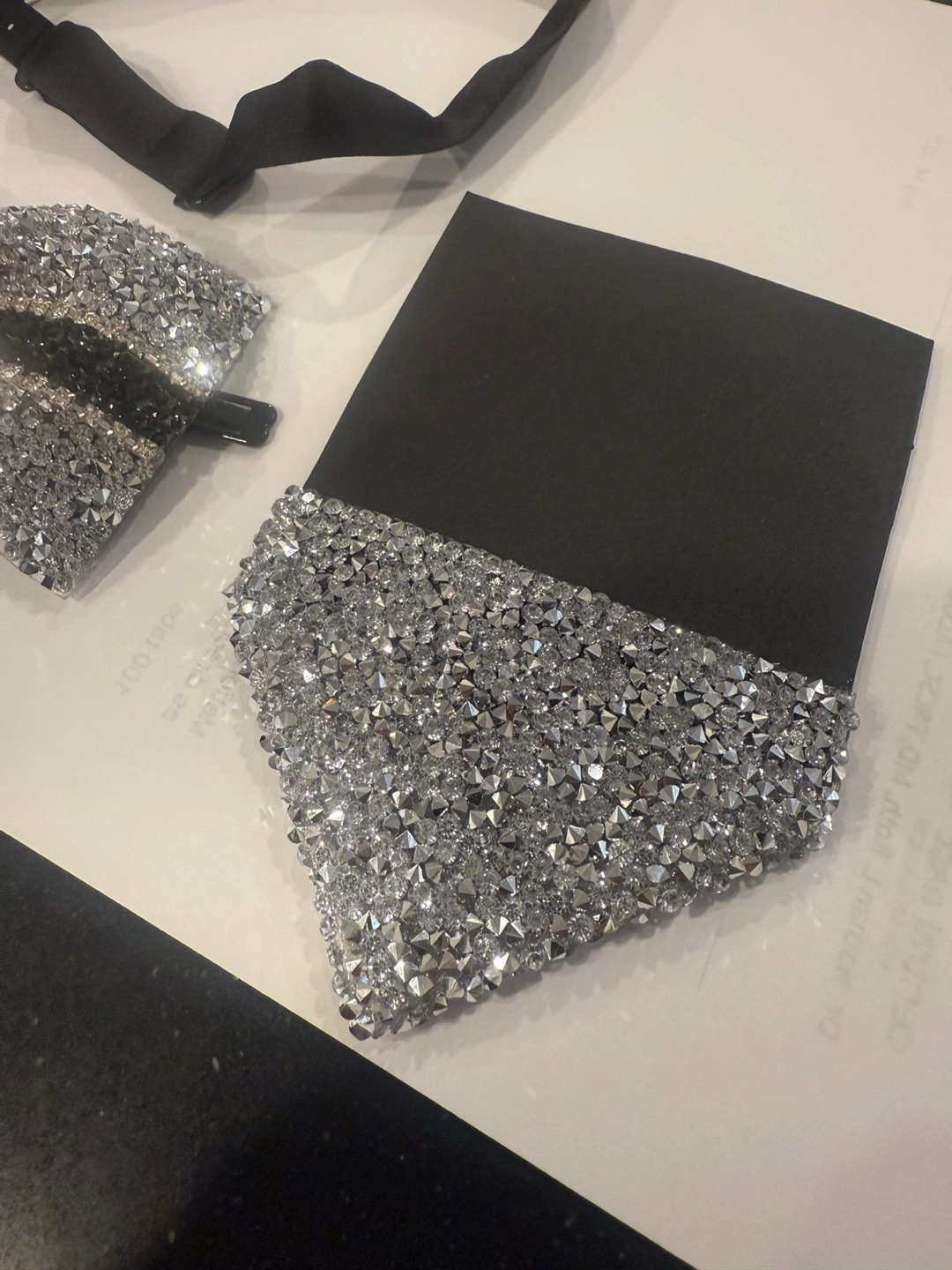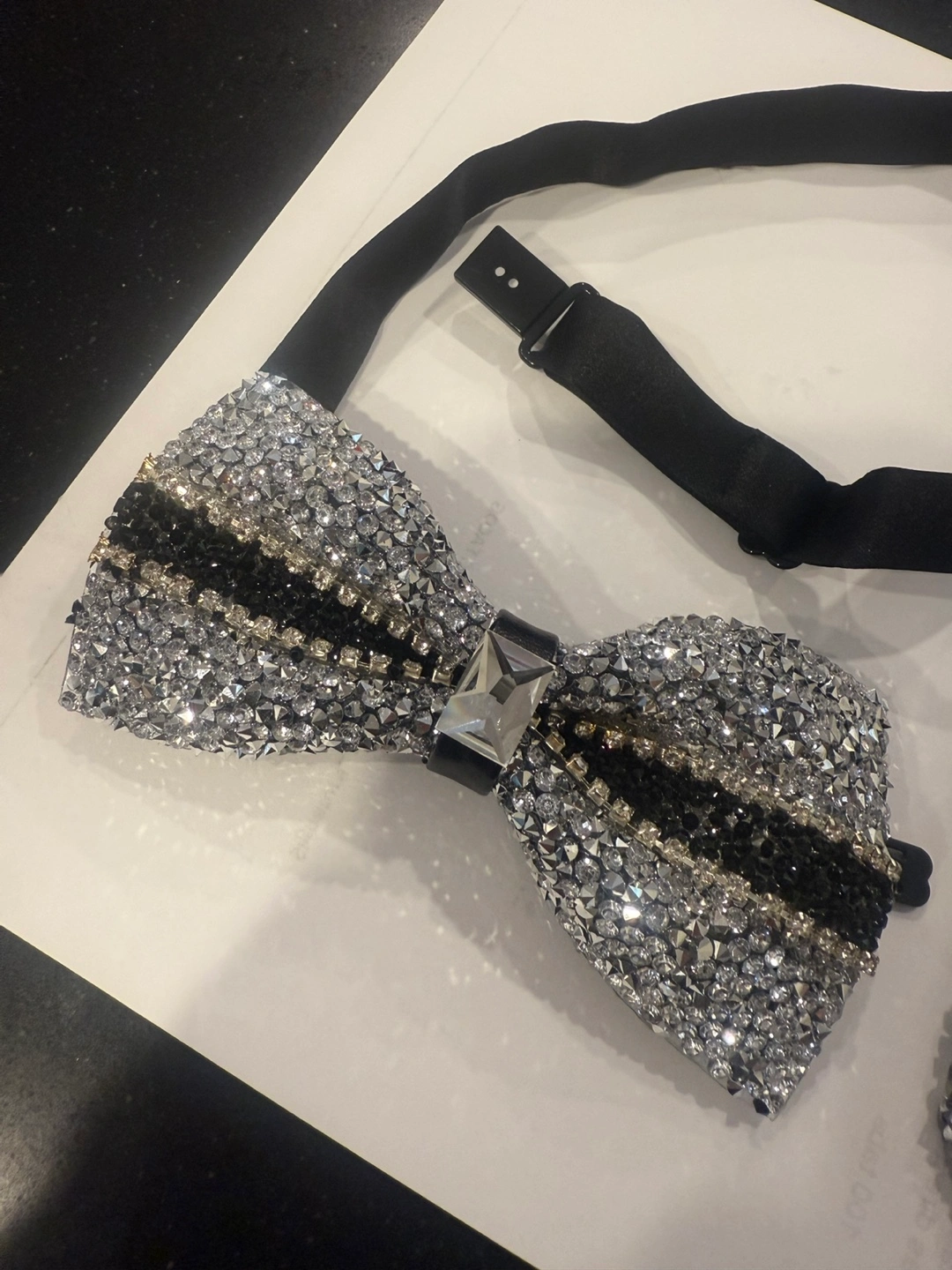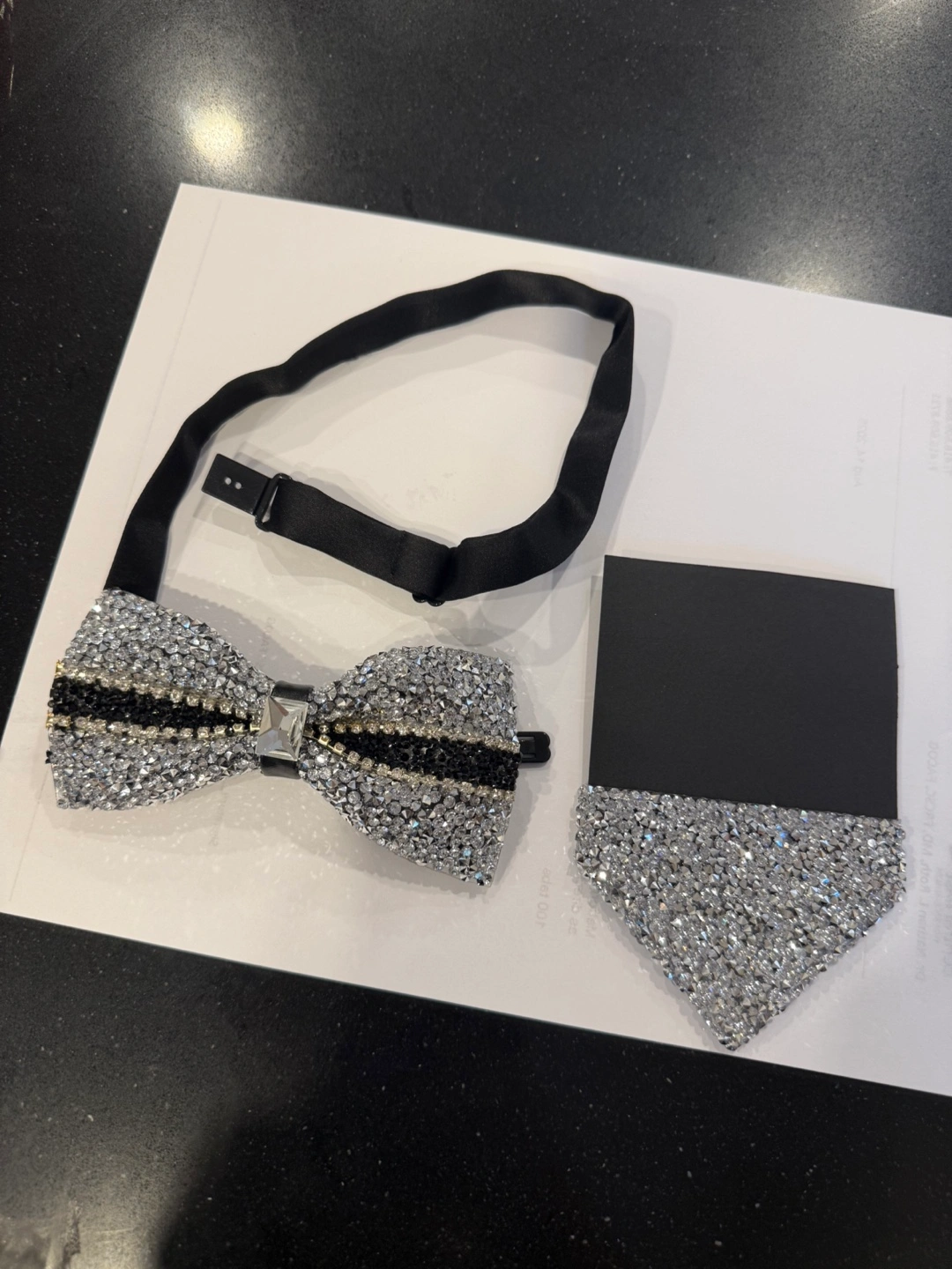 38Selling a stylish rhinestone bow tie and pocket square set! This set is perfect for adding a touch of sparkle to any formal outfit. The bow tie features a classic design with eye-catching rhinestones, and the matching pocket square completes the look. Great for weddings, parties, or any special occasion!